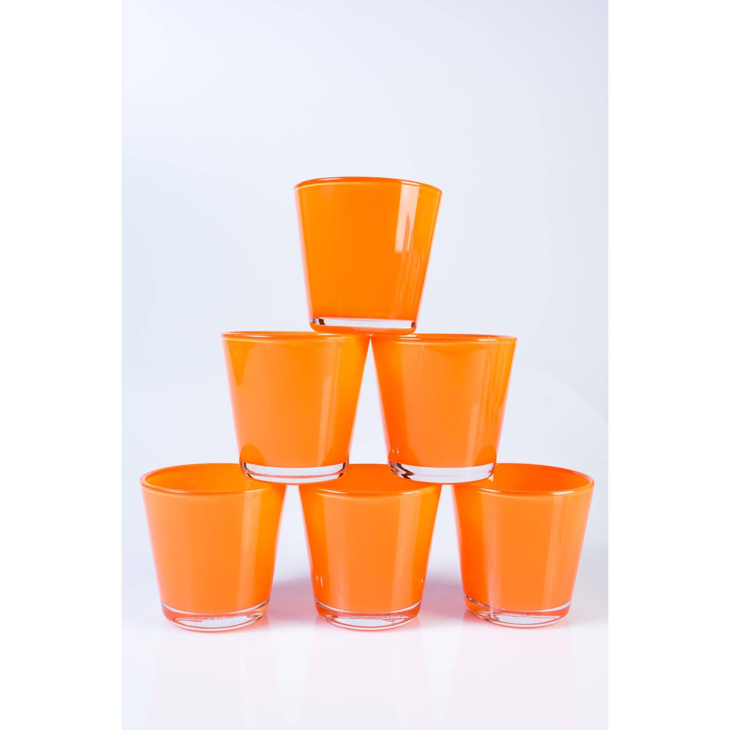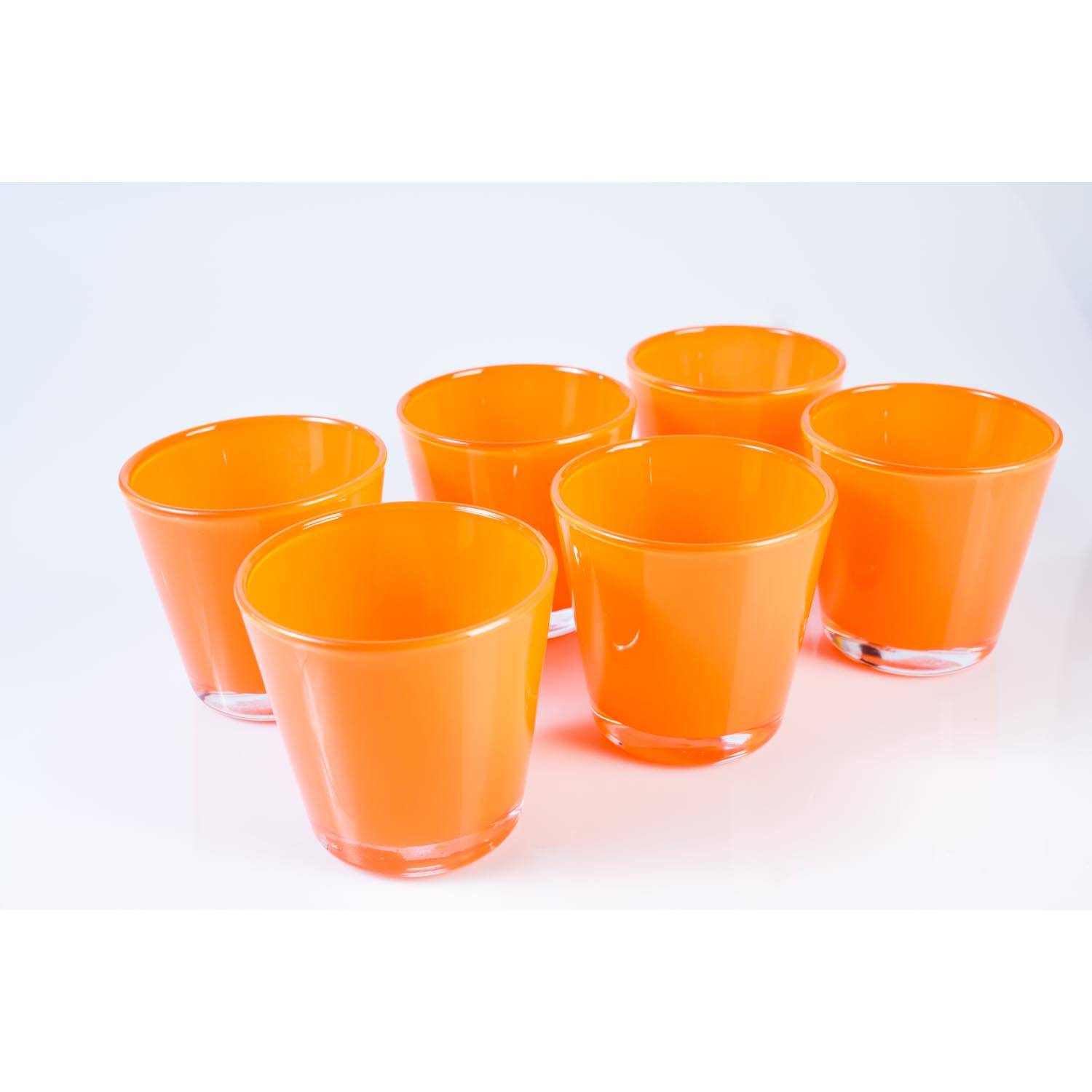 6 x portavelas pequeños de cristal ALEX AIR, naranja, 7,5cm, Ø 7,5cm