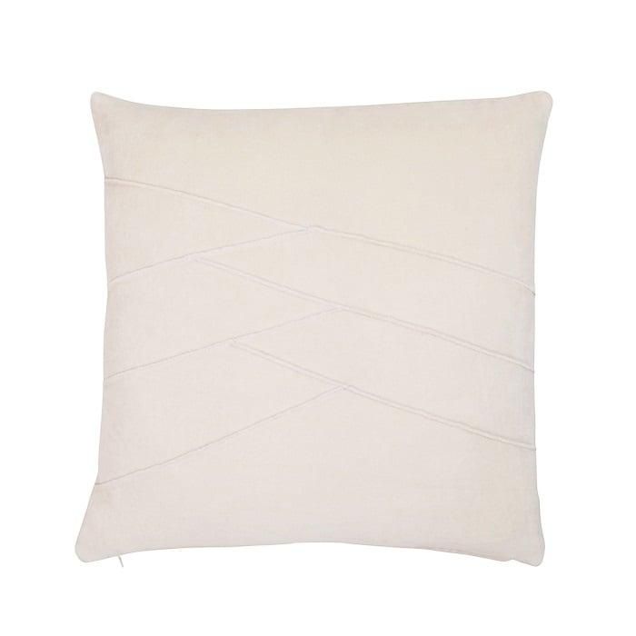 Acogedor cojín de terciopelo NOELANI, costura decorativa diagonal, crema, 45x45cm