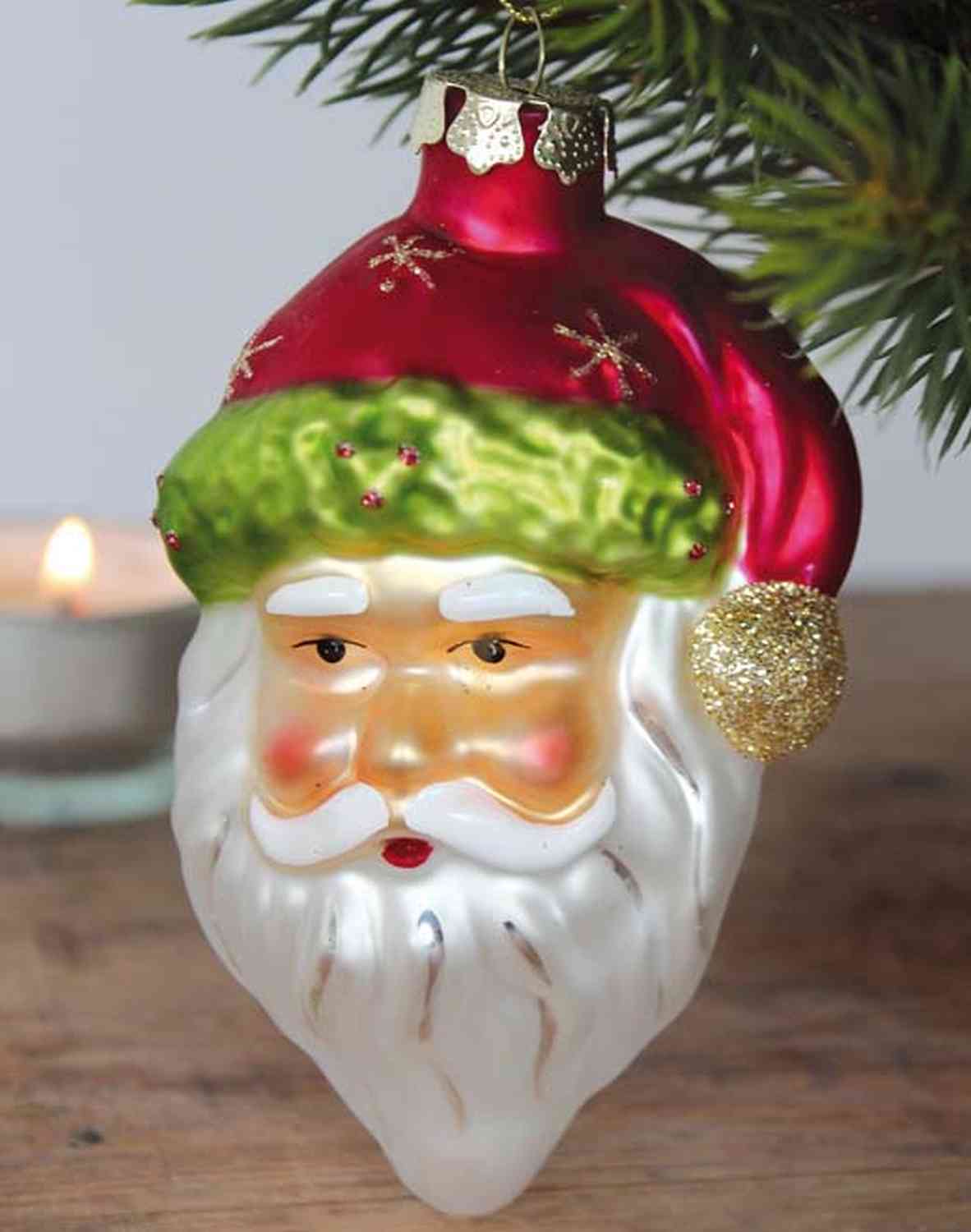 Adorno de cristal de la cabeza de Santa Claus, verde-rojo, 10x6x5cm