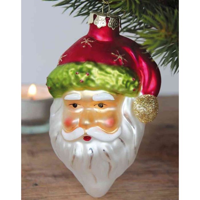 Colorido colgante navideño ",Cabeza de Papá Noel ", como alegre decoración para la Navidad. El adorno de cristal tiene un tamaño aprox. De 10 x 6 x 5 cm.