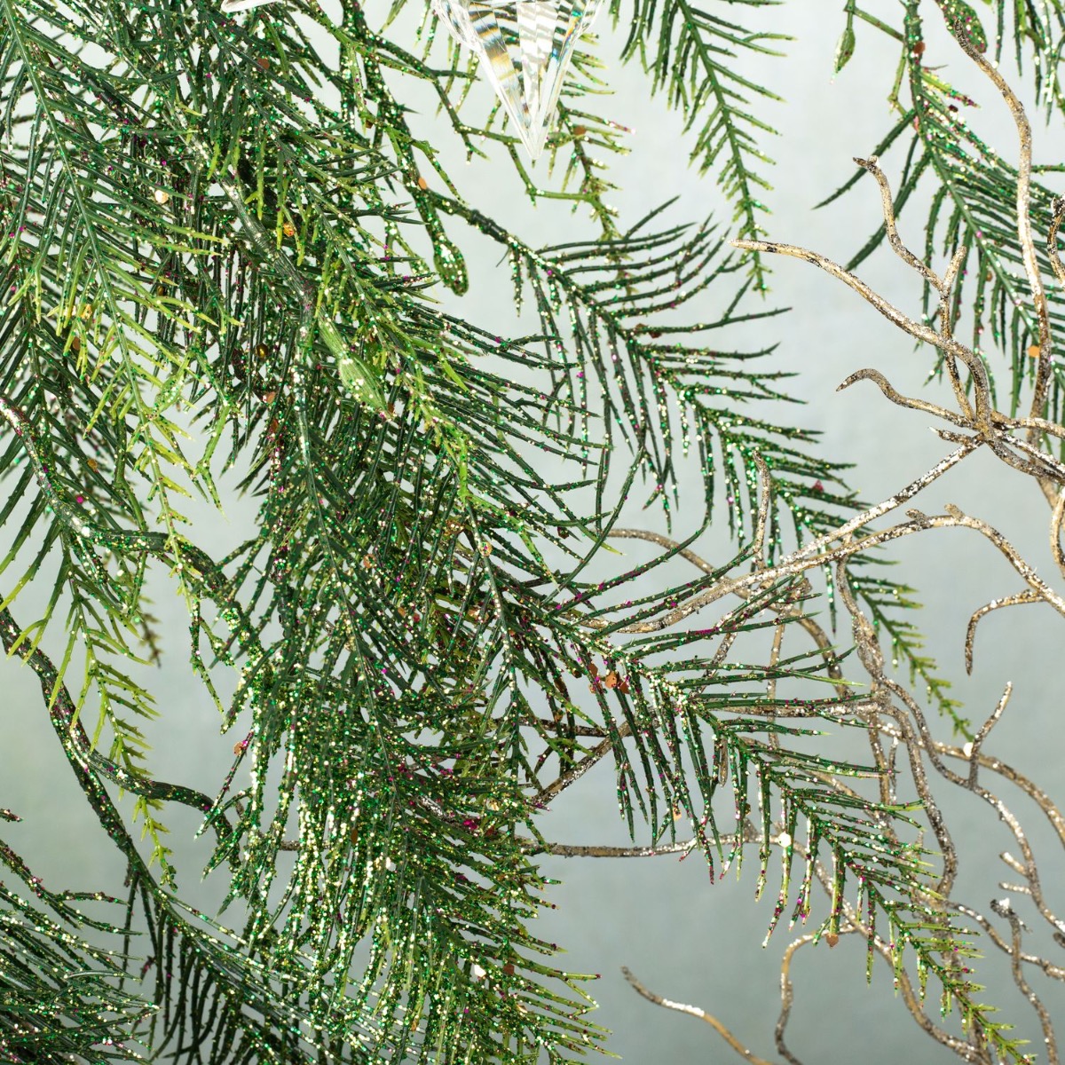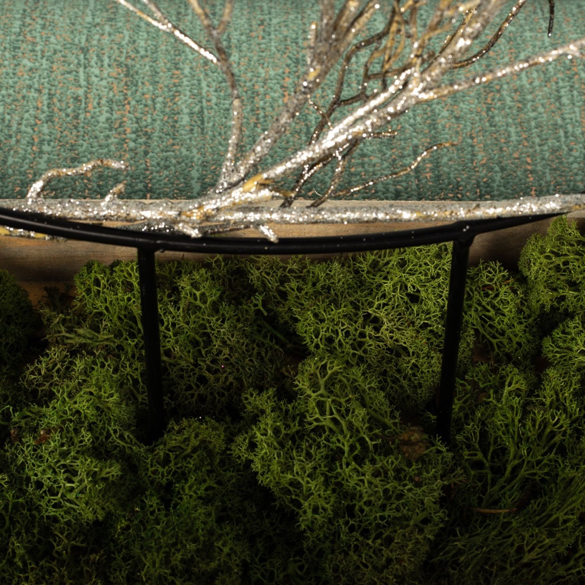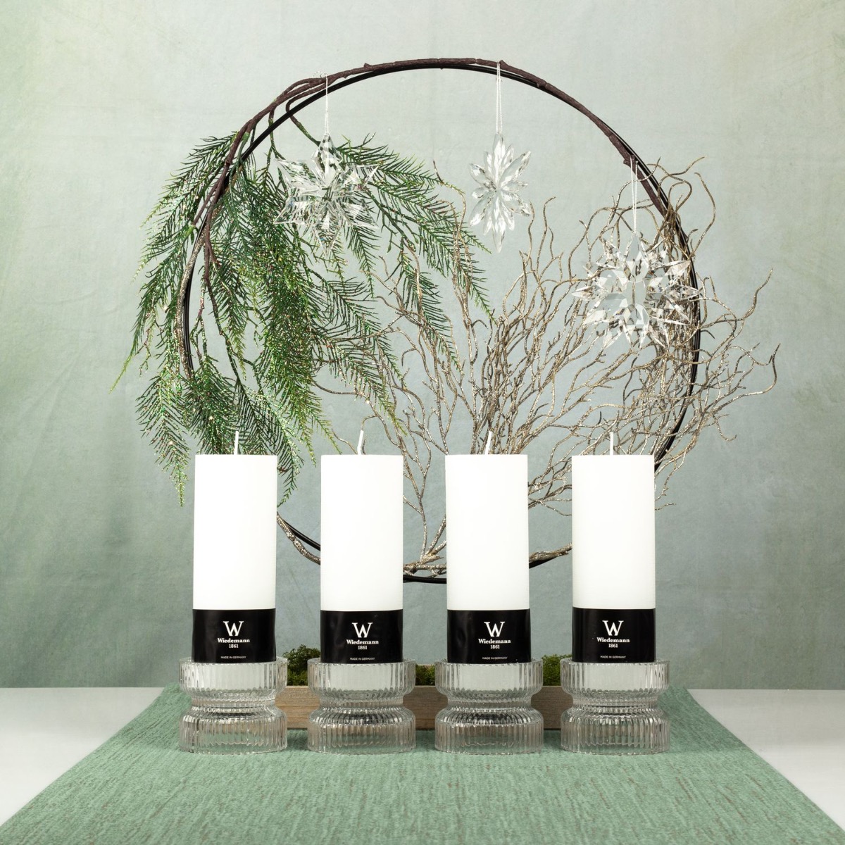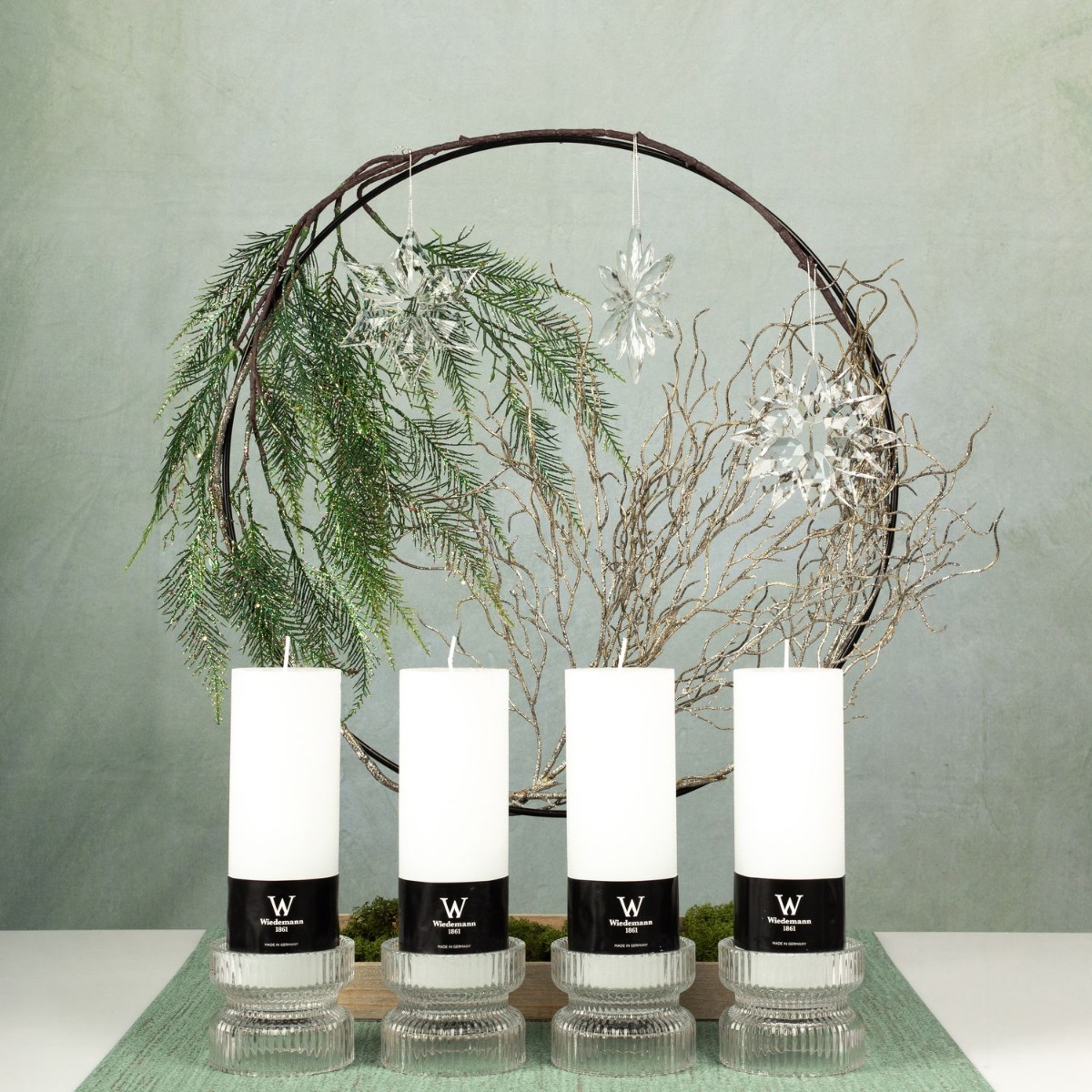 ¡Plateado y brillante! Nuestro look de Adviento es especialmente elegante y también puede utilizarse como corona de Adviento gracias a sus 4 grandes velas de pilar. Una corona de Adviento clásica siempre se diseña en forma de anillo. La fe católica lo utiliza para describir la resurrección y la eternidad de la vida. Nuestro anillo de metal autoportante, que también es adecuado para grandes ideas de decoración después de la temporada navideña, se ha decorado con ramitas brillantes y adornos del árbol de Navidad. La bandeja de madera gris se ha rellenado con nuestro musgo natural verde, porque el verde representa la esperanza y la vida. Este look es un extraordinario comienzo de la temporada navideña. ¡Compra el look!