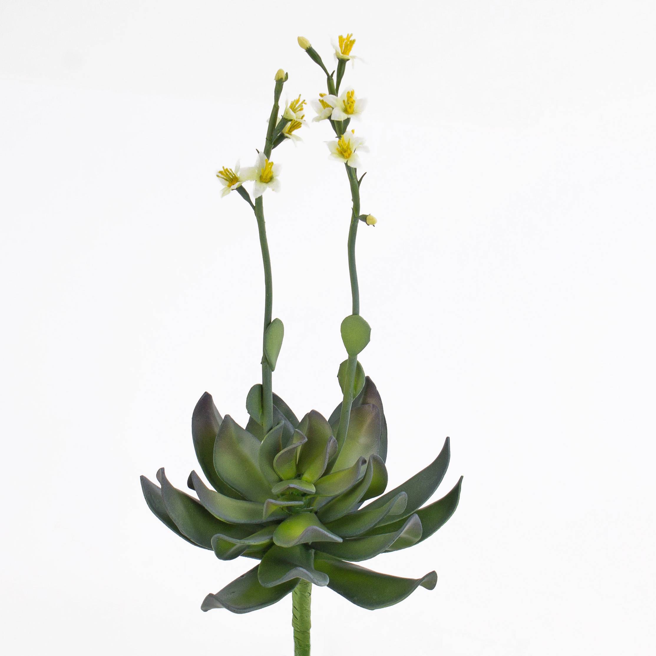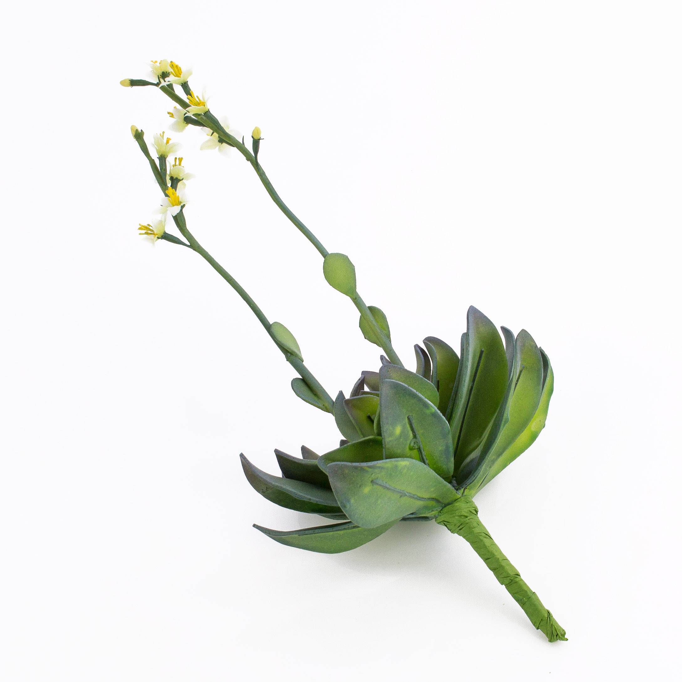Aeonium suculenta artificial CHARLIZE, floración, con palo, amarillo, 30cm