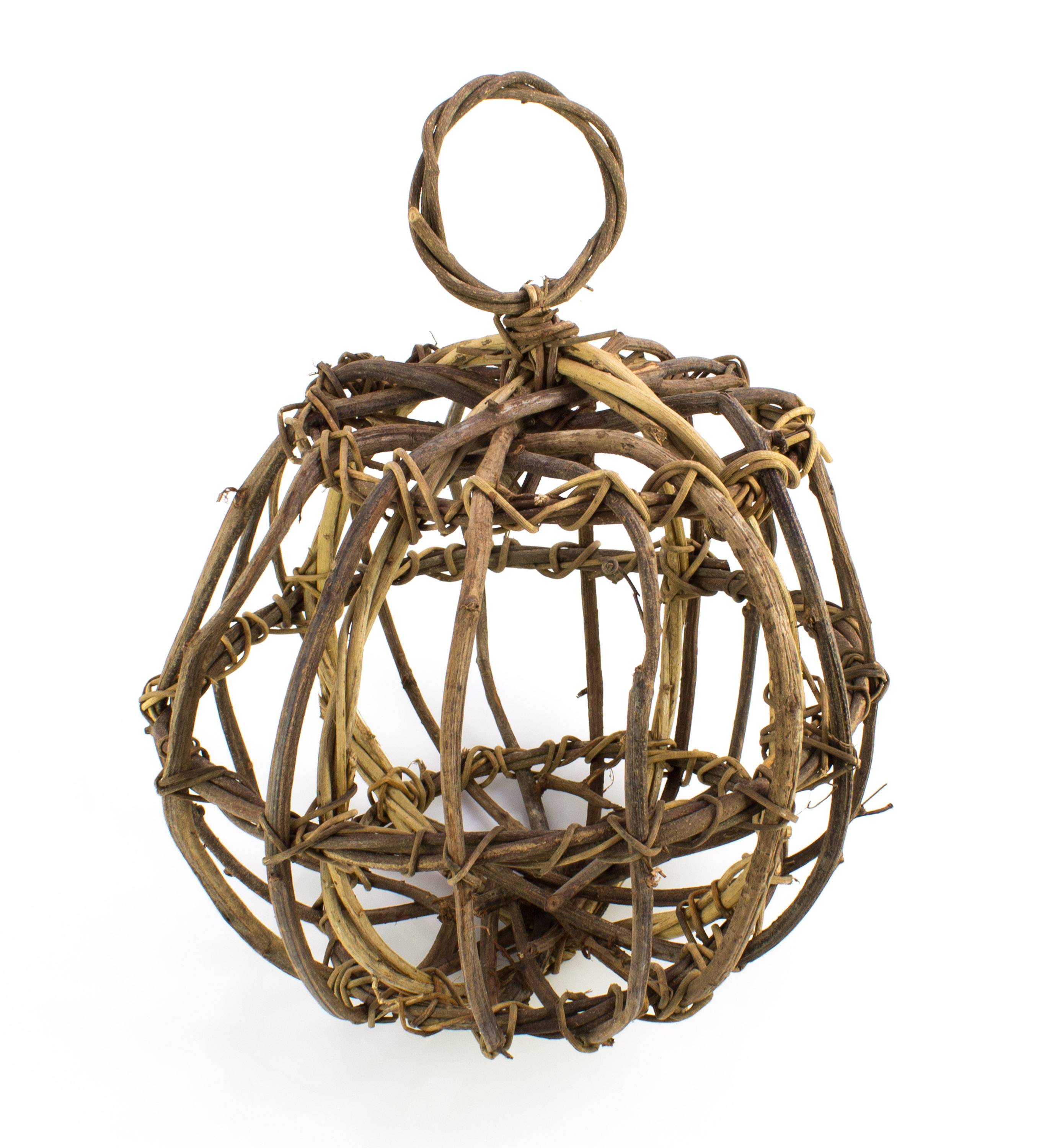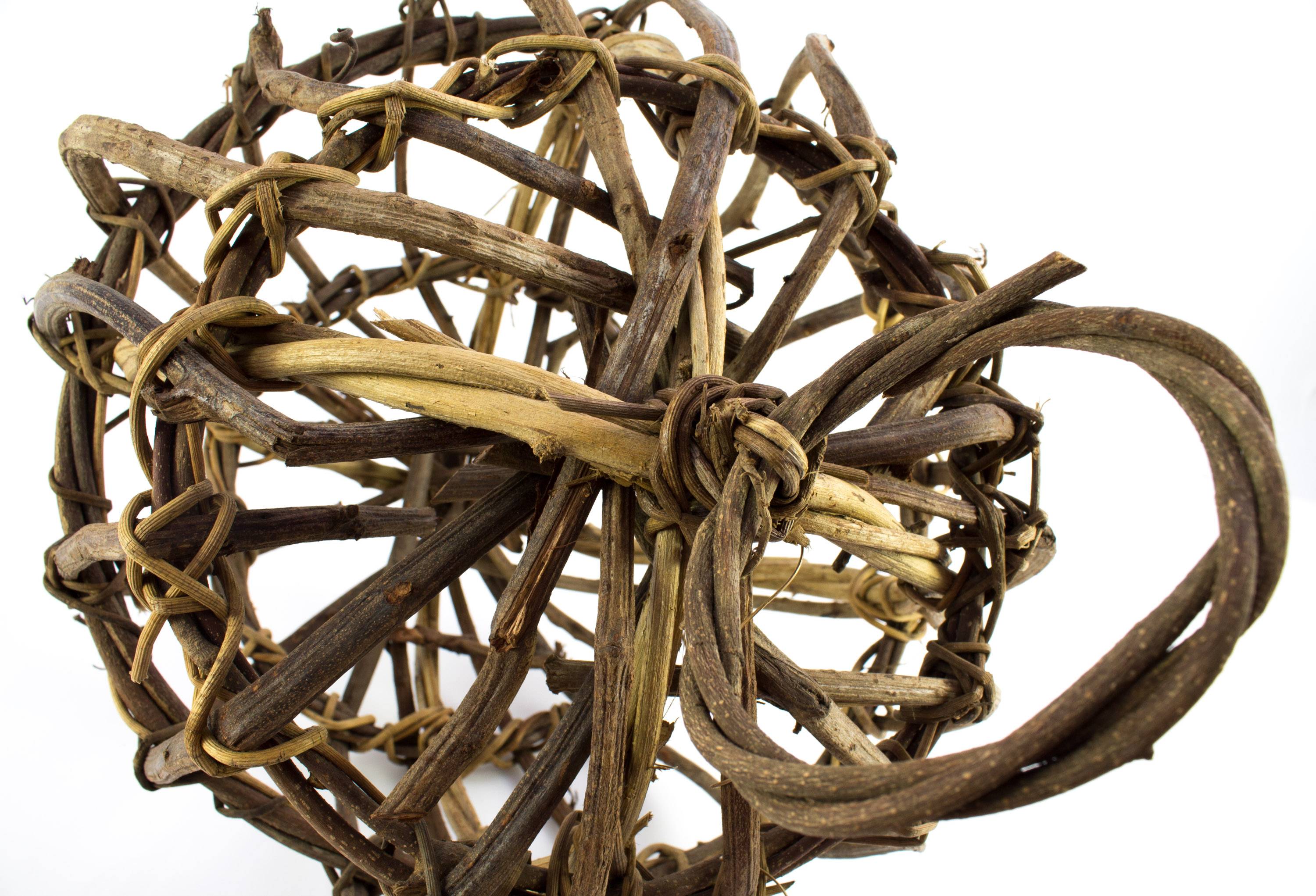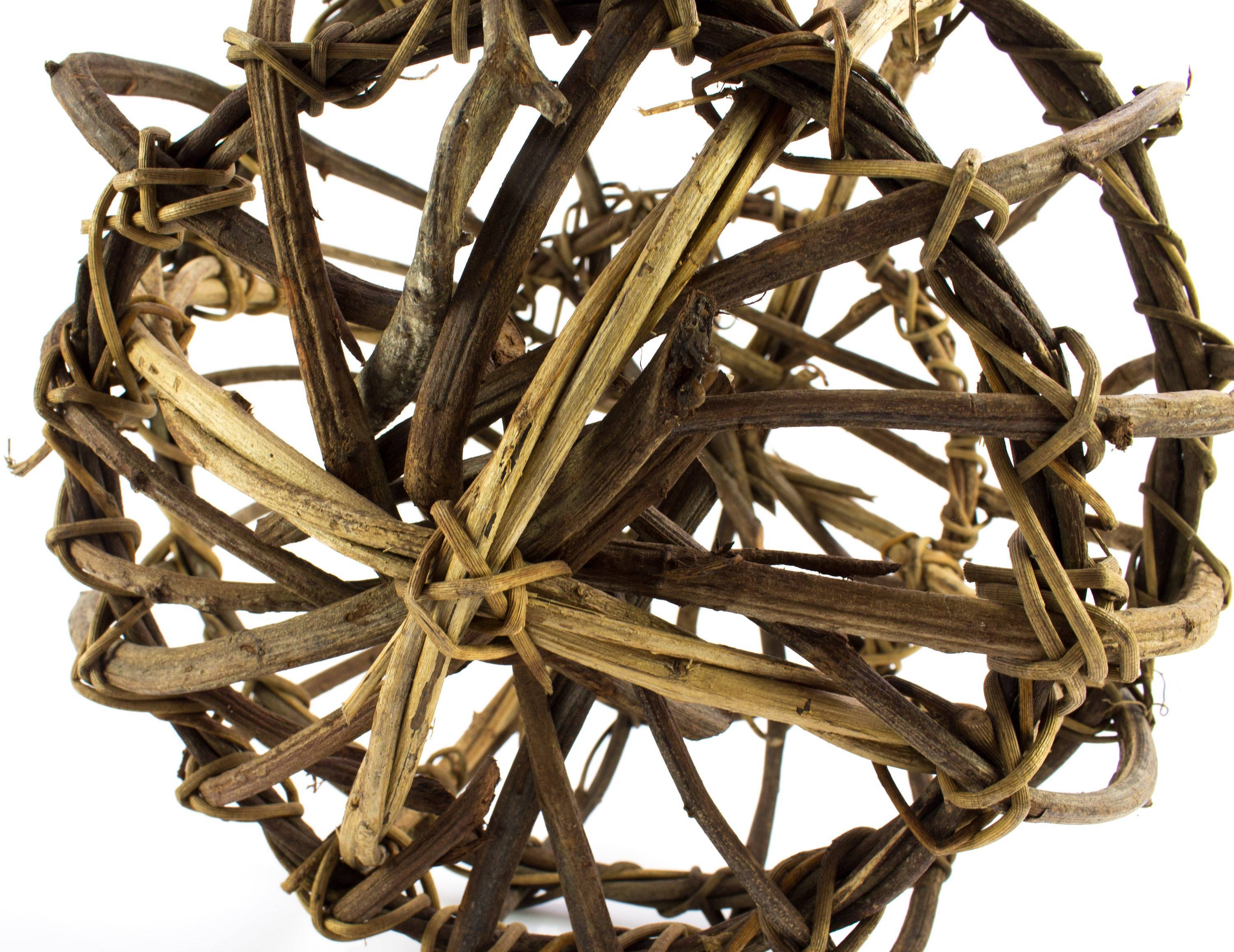 Retoños secados de vino silvestre atados firmemente en forma de bola. La bola mide un diámetro exterior de aprox. 35 cm.