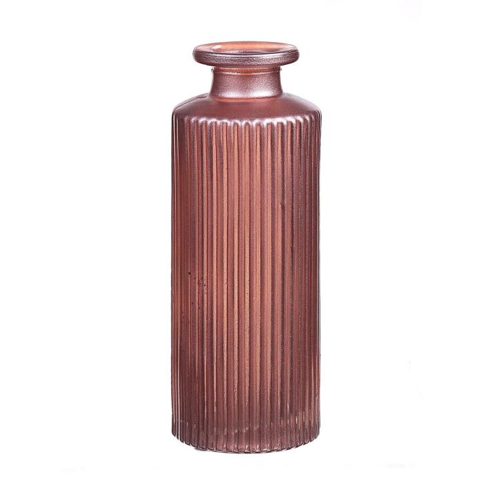 Botella de cristal EMANUELA, diseño acanalado, rosa-metálico, 13,2cm, Ø5,2cm