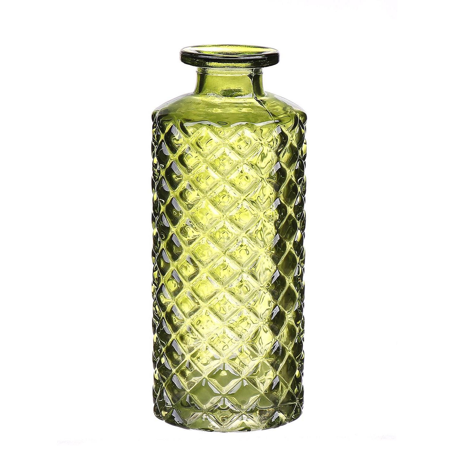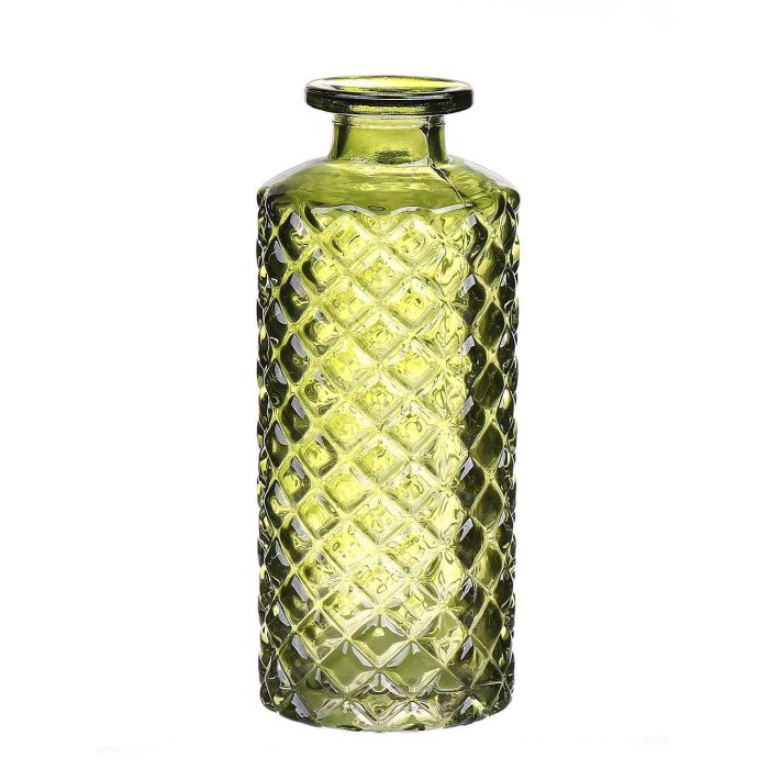 Botella de cristal EMANUELA, diseño de rombos, verde oliva-transparente, 13,2cm, Ø5,2cm