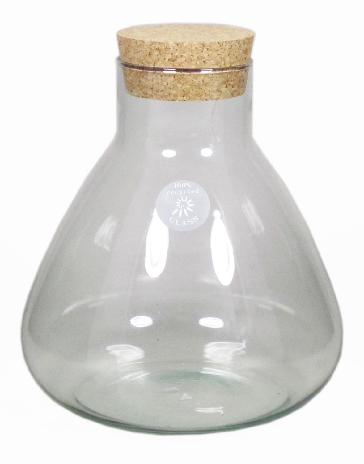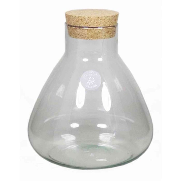 Botella de vidrio PEPPA, con tapa de corcho, cónica/redonda, transparente, 20cm, Ø7cm/Ø16,5cm