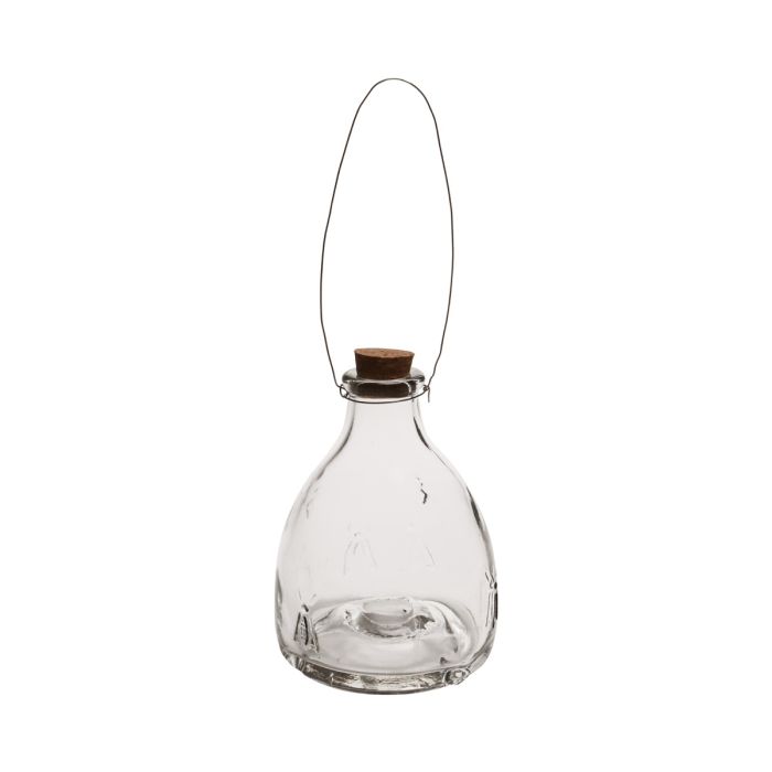 Botella de vidrio SUMIRE, asa, tapa de corcho, motivo de abeja, transparente, 13cm, Ø9cm