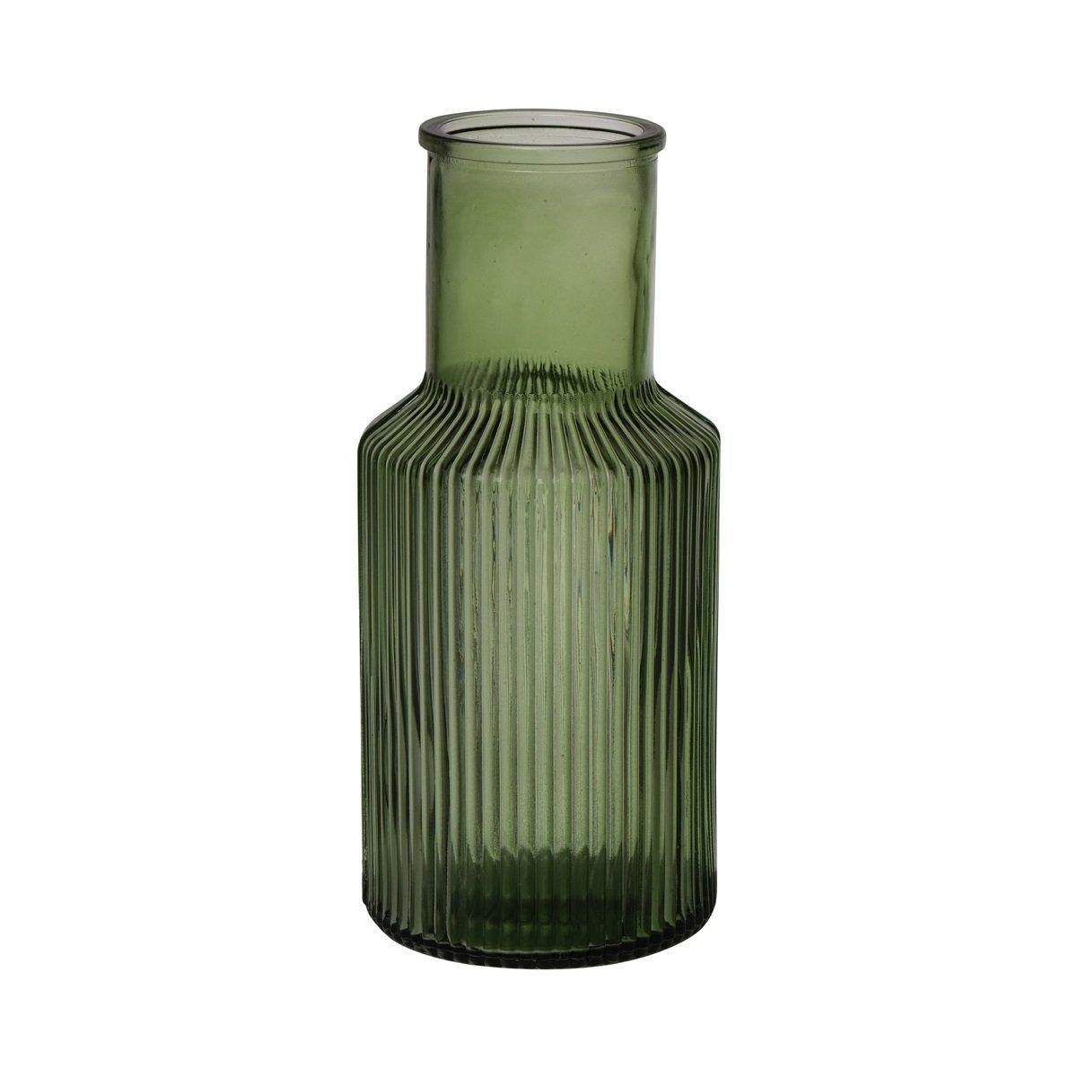Botella decorativa CARMELA de cristal, ranuras, verde-transparente, 22cm, Ø10cm