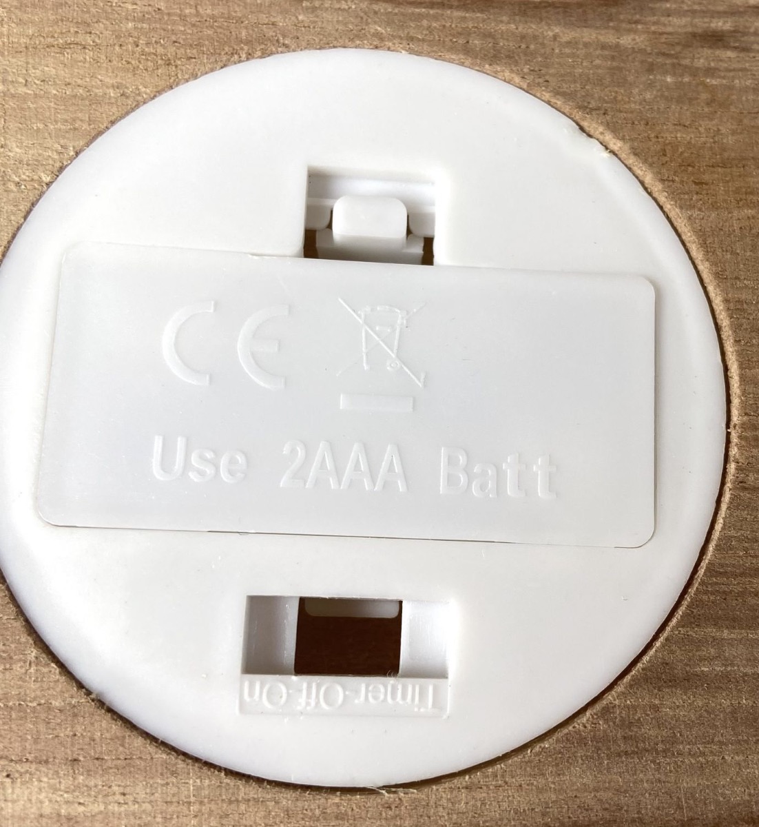 - Sobre base de madera con luces de hadas integradas y botón para encender y apagar