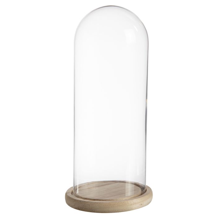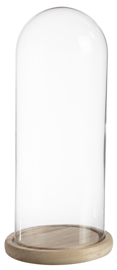 Campana de vidrio SABIKA con base de madera, transparente, 26cm, Ø12cm
