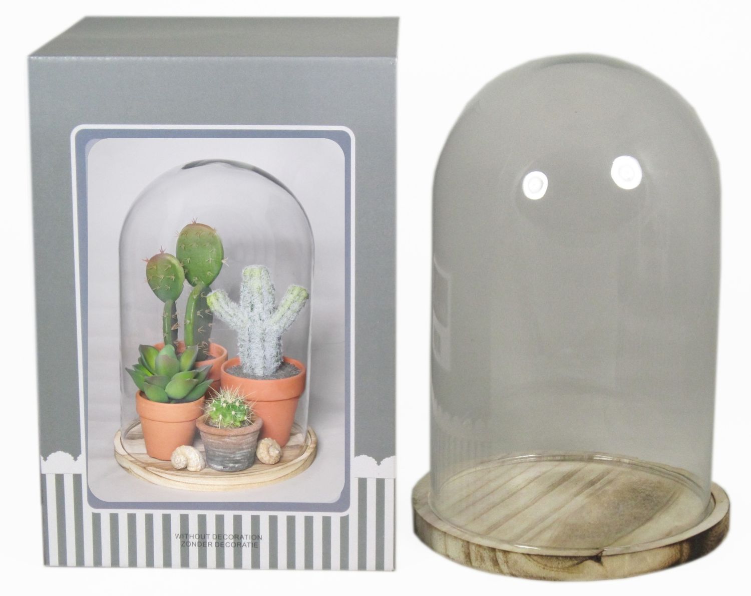 Campana de vidrio SABIKA con fondo de madera jaspeada, transparente, 25cm, Ø17,5cm
