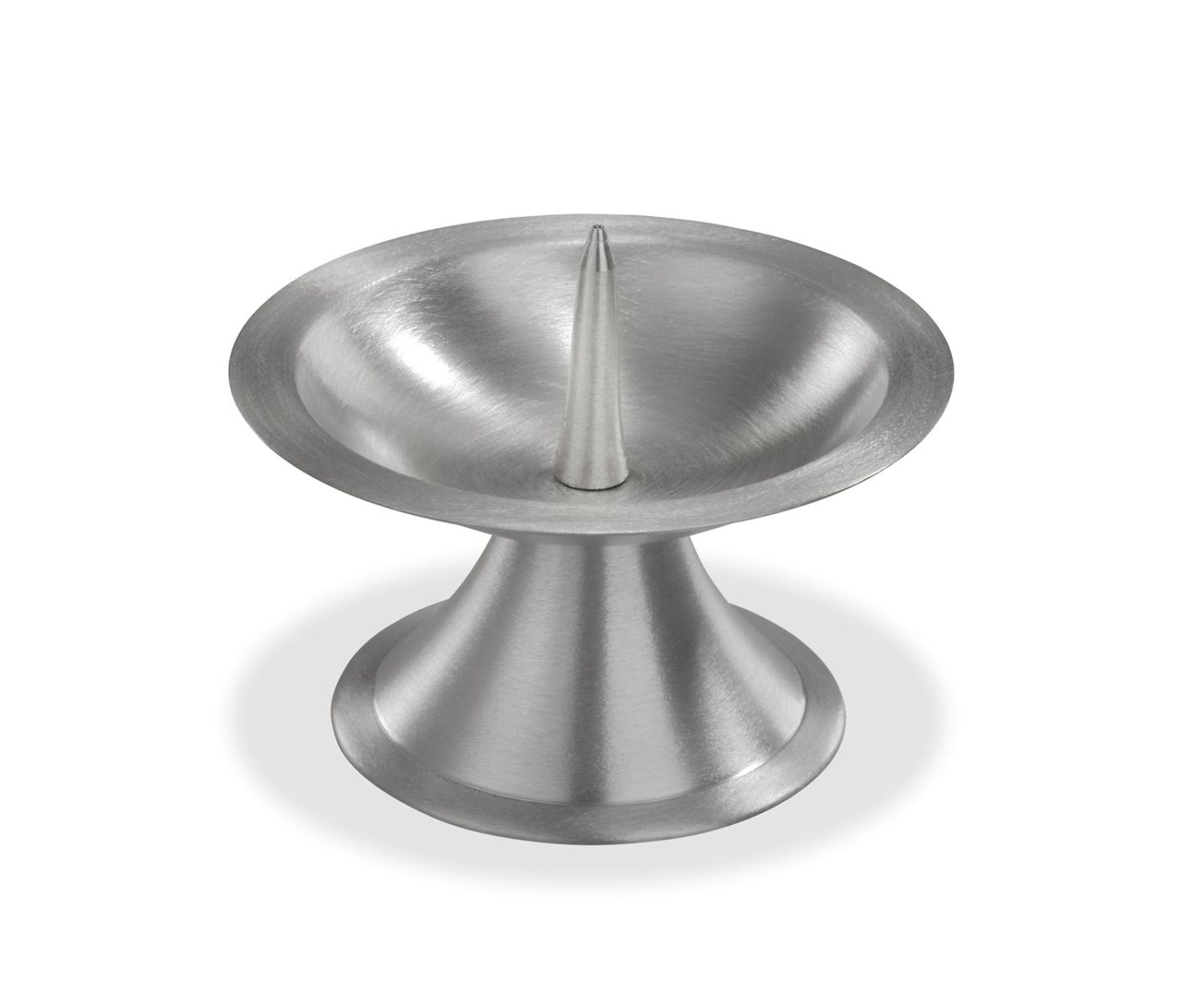 Candelero de latón OLIVERIO con pincho, para velas Ø5-6cm, niquelado, cepillado mate, plata, 5cm, Ø9cm
