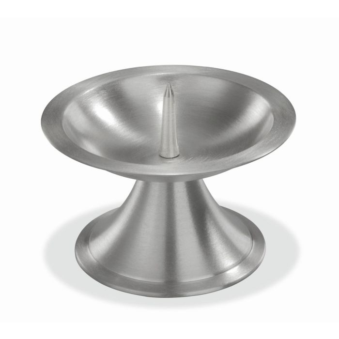 Candelero de latón OLIVERIO con pincho, para velas Ø7-8cm, niquelado, cepillado mate, plata, 6,5cm, Ø11cm