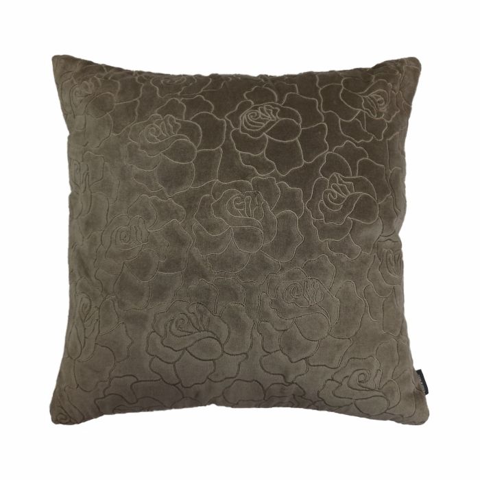 Cojín de terciopelo ALAIA, motivo rosa, beige, 45x45cm