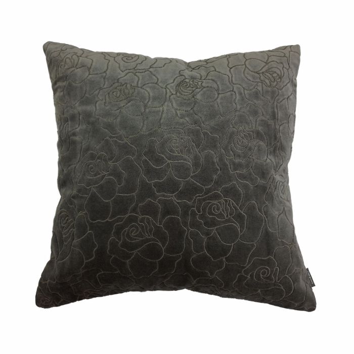Cojín de terciopelo ALAIA, motivo rosa, gris, 45x45cm