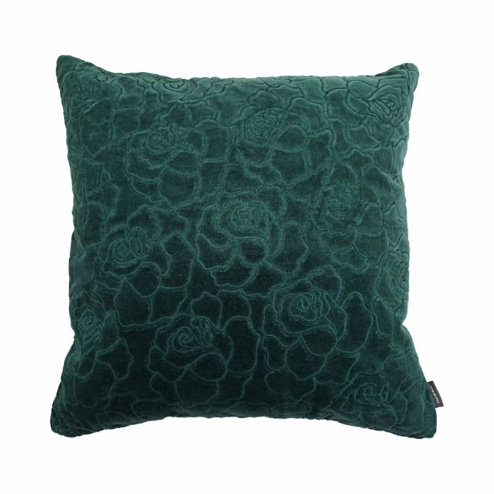 Cojín de terciopelo ALAIA, motivo rosa, verde pino, 45x45cm