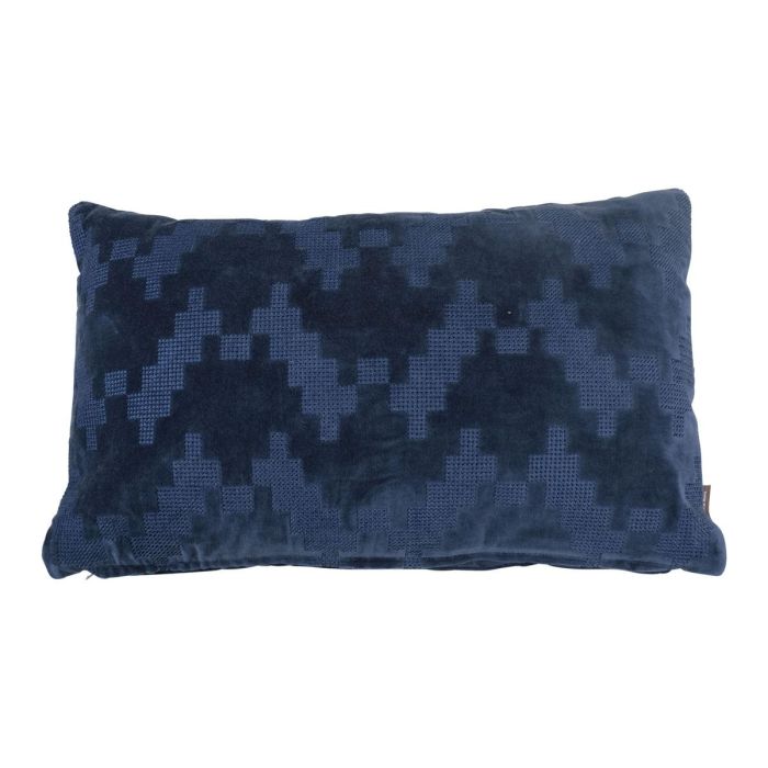 Cojín de terciopelo suave ANJALI, azul marino, estampado en zigzag, 50x30cm