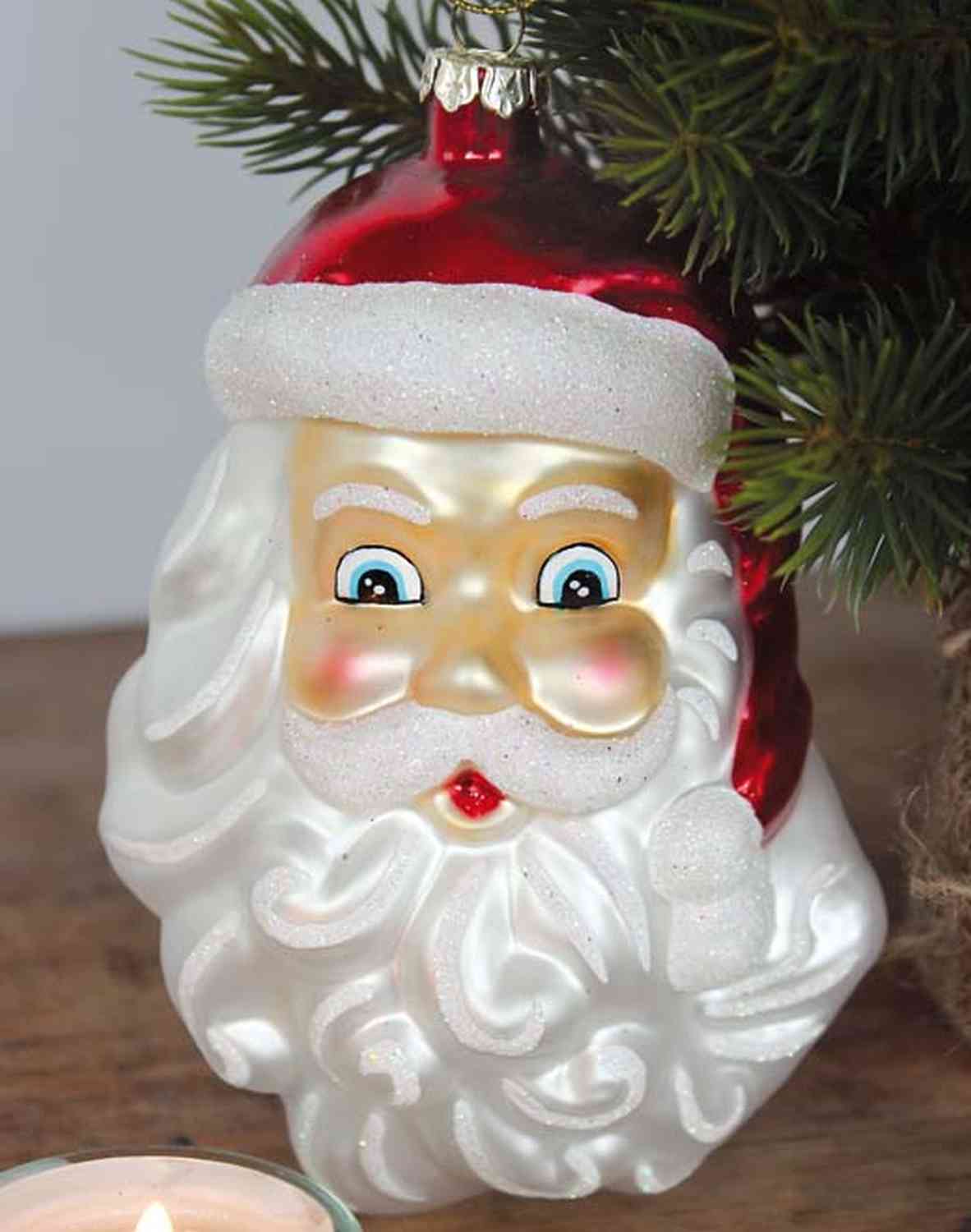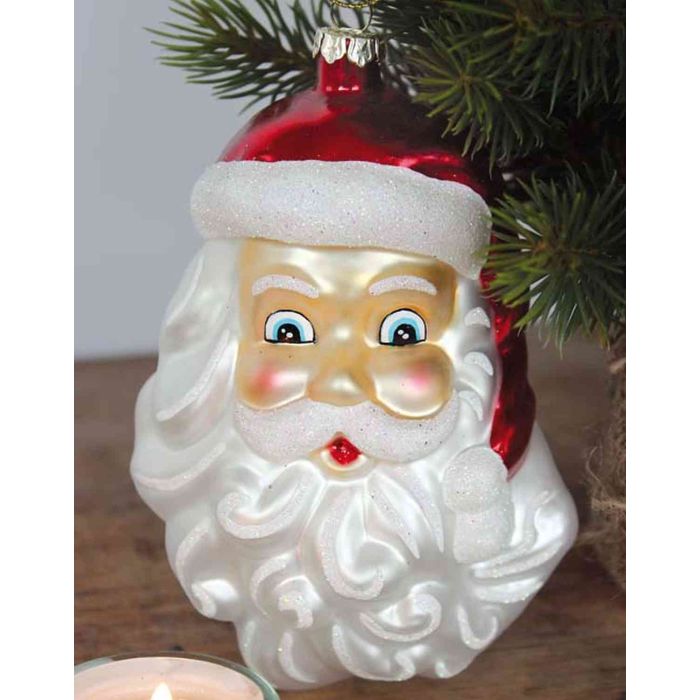 Precioso colgante de cristal para la decoración navideña con la cabeza de Papá Noel. El adorno para el árbol de Navidad tiene un tamaño de 13 x 9 x 7 cm.