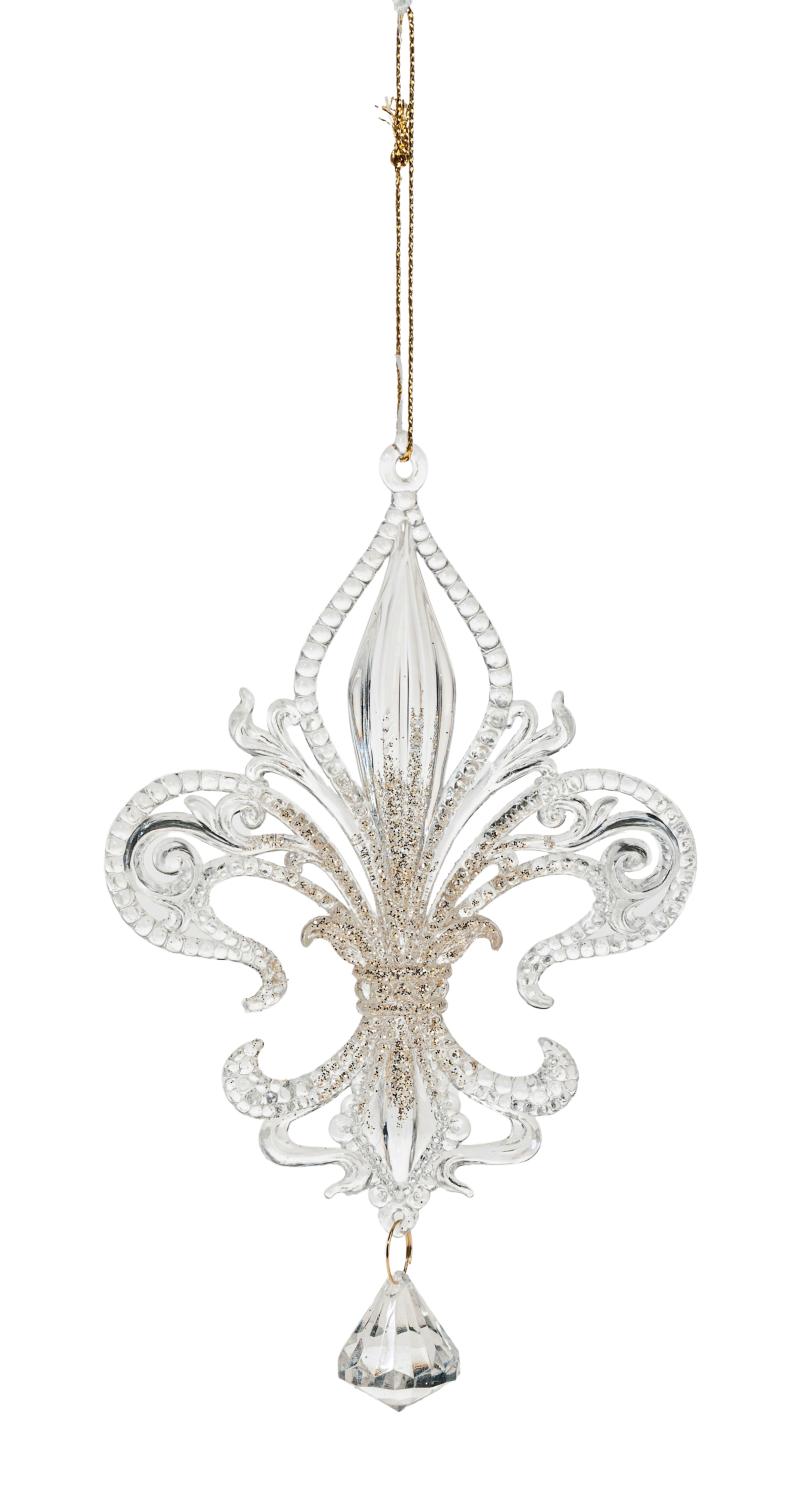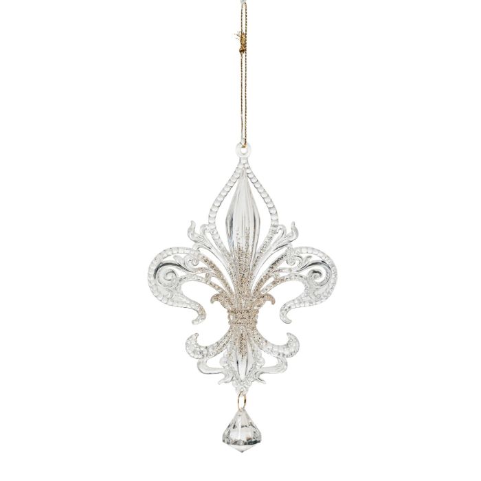 Colgante decorativo de lirio heráldico AZARIEL acrílico, purpurina, transparente-oro, 15cm