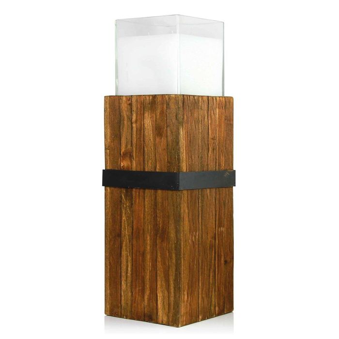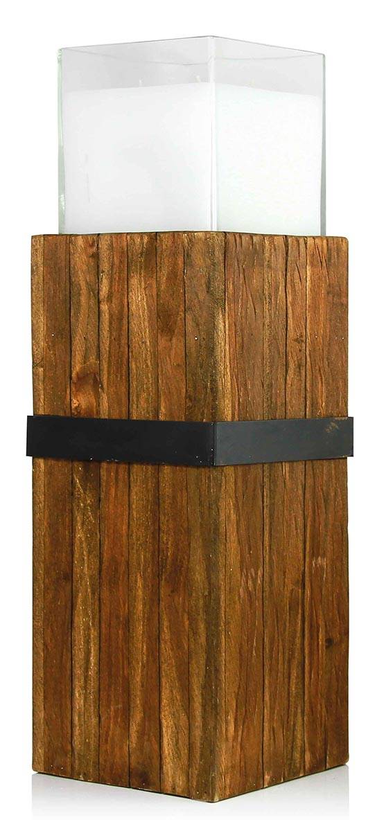 Columna de madera con vela de vidrio / vela decorativa SAMORY, marrón, 50 cm, Ø22cm, 180 h - Hecho en Alemania