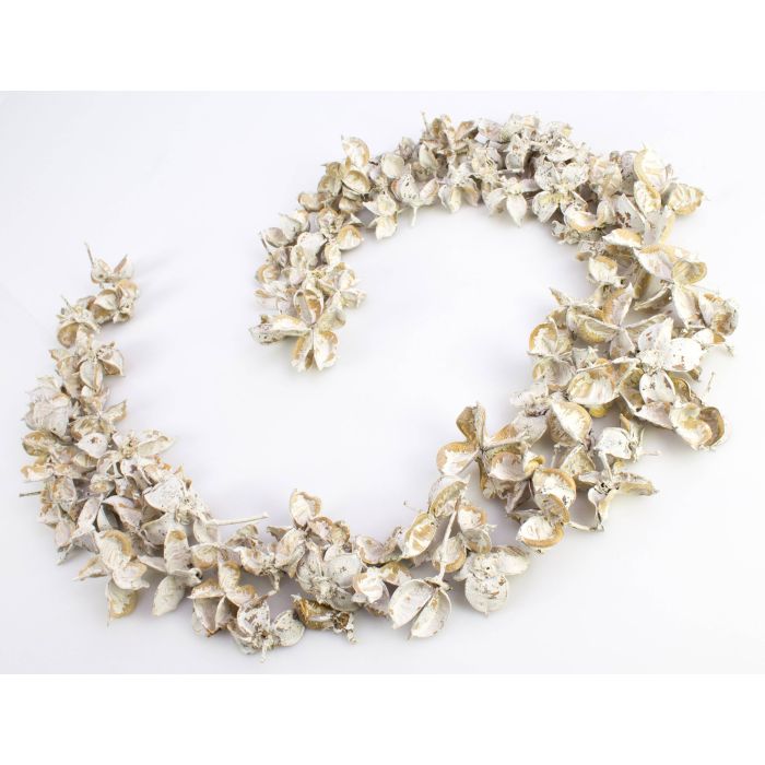 - Superfície encalada que proporciona a las vainas un color blanco con todavía visible matices en color beige claro de la superfície original