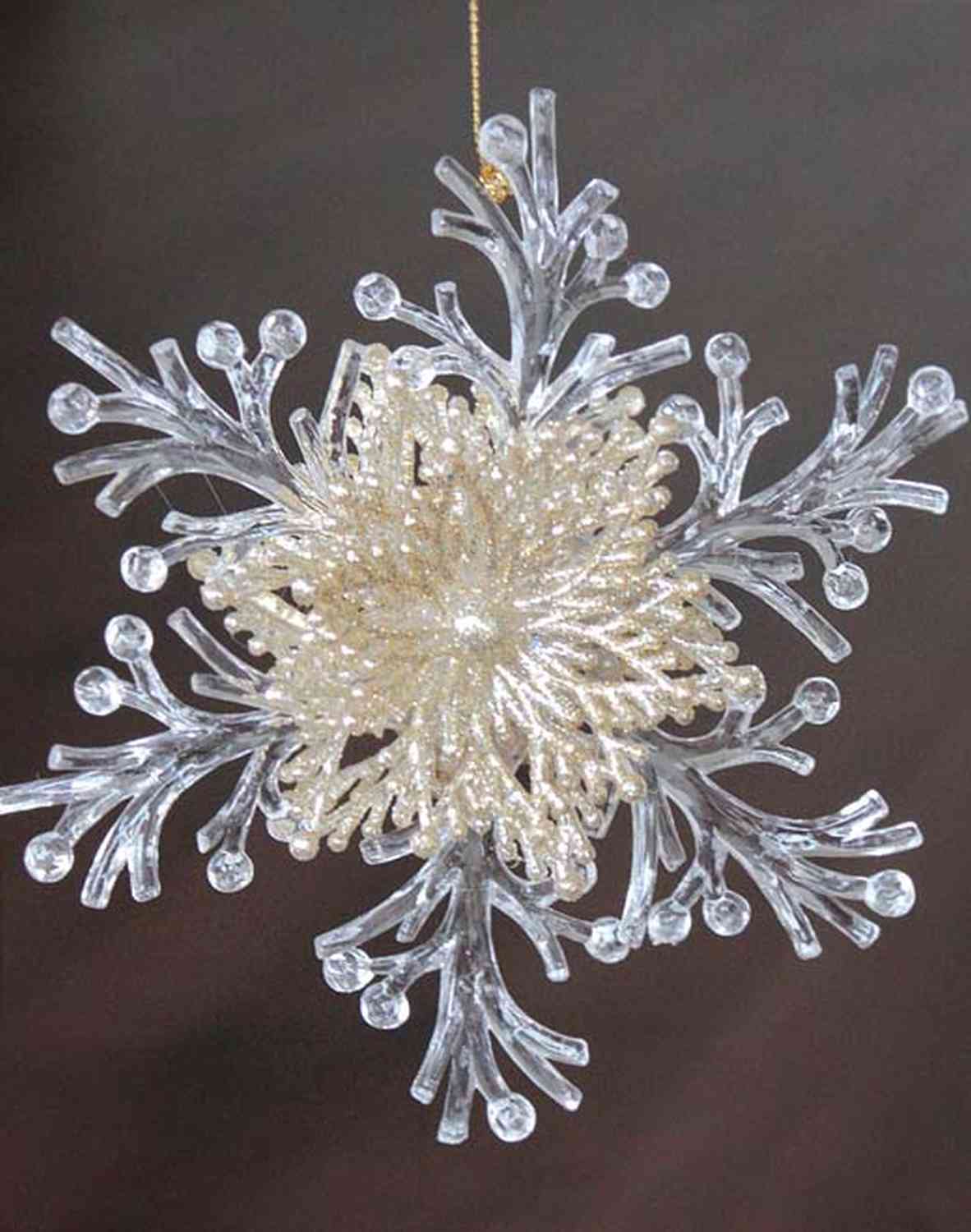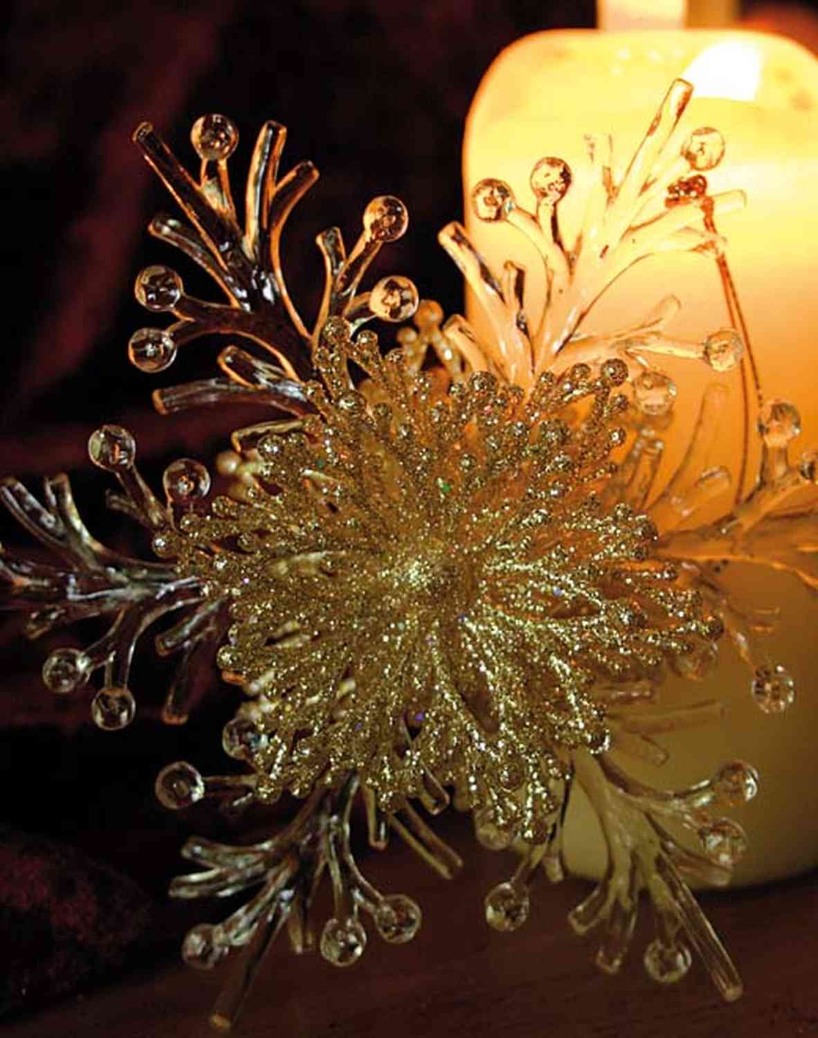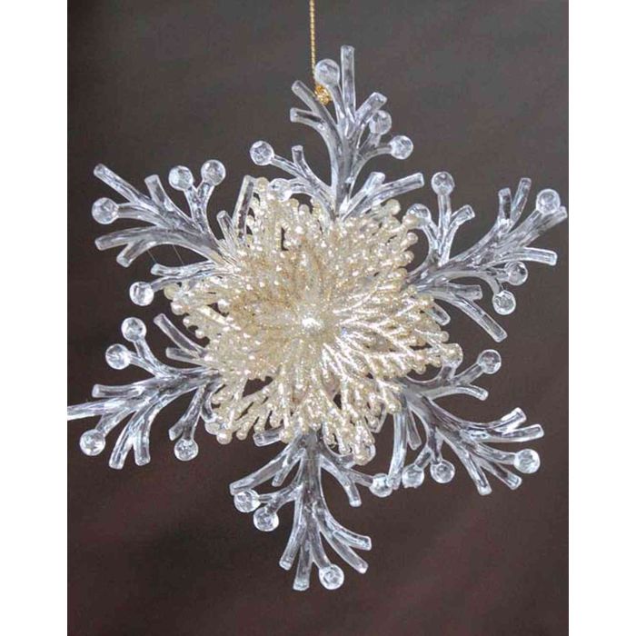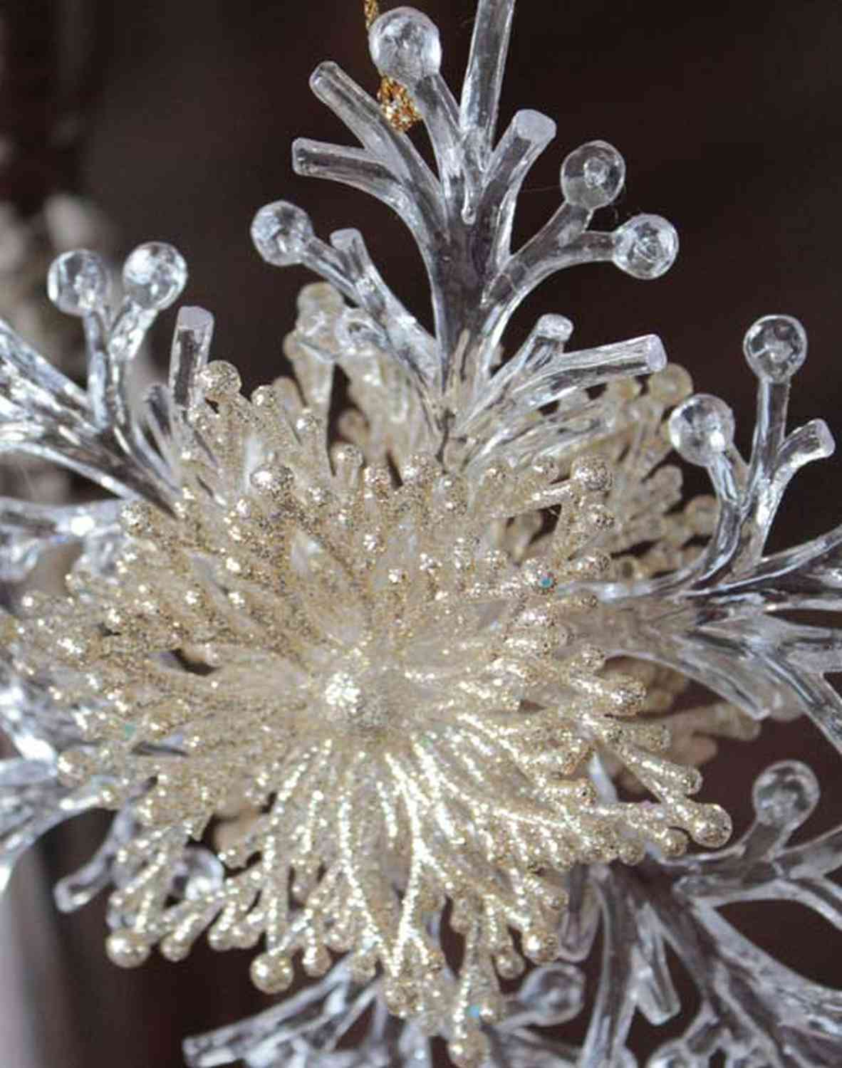 Copo de nieve acrílico para colgar BALADI, brillo, transparente-oro, Ø15cm