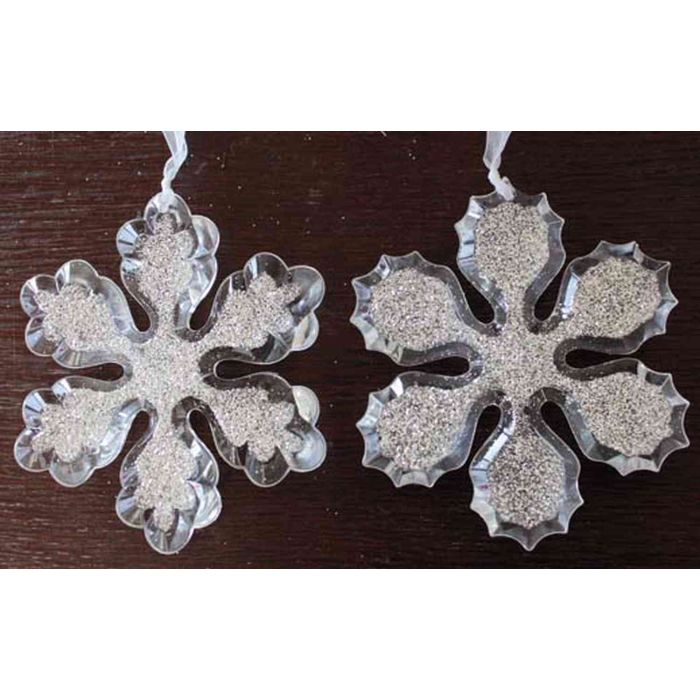 Copo de nieve acrílico para colgar YLVALIE, 2 piezas, brillo, transparente-plata, Ø10cm