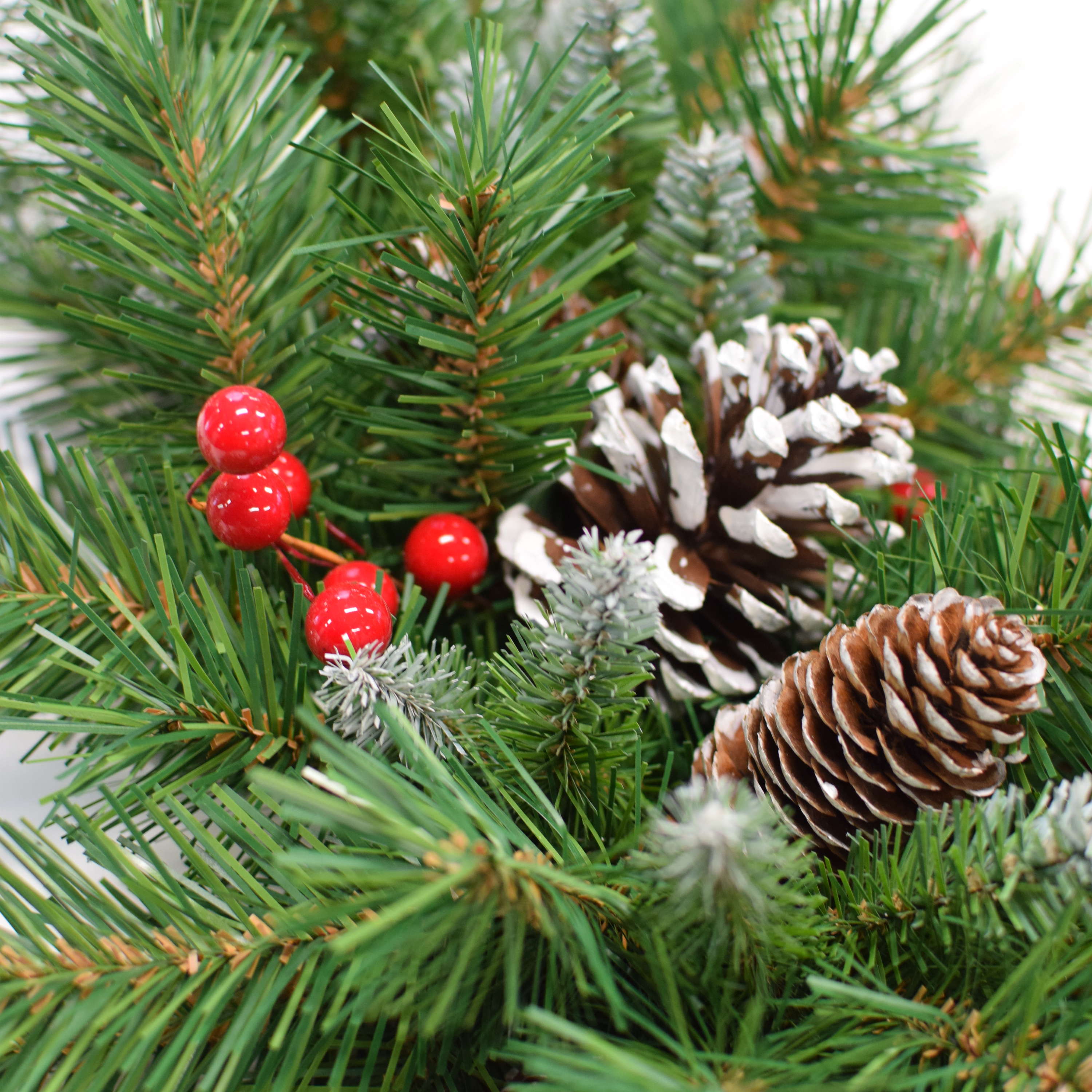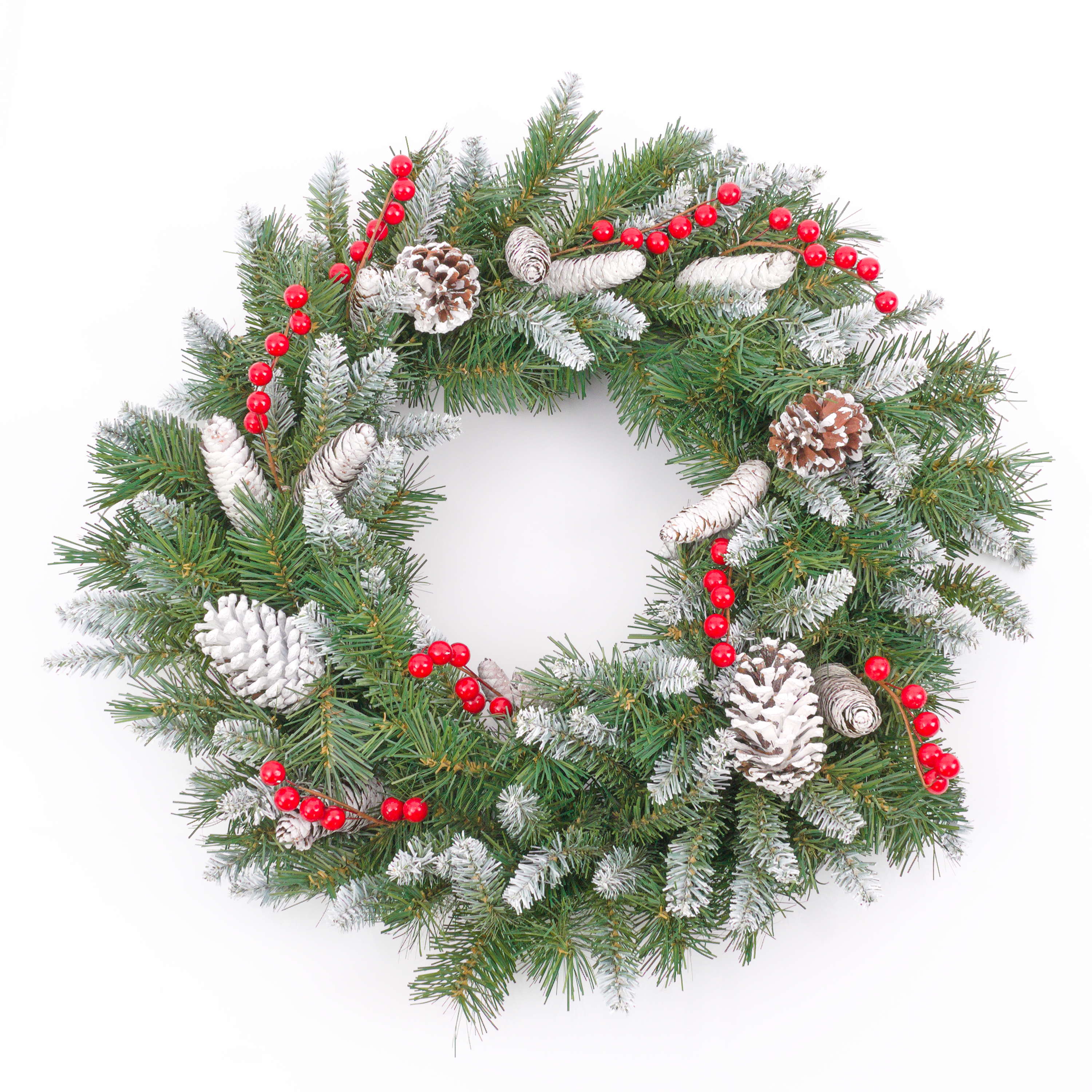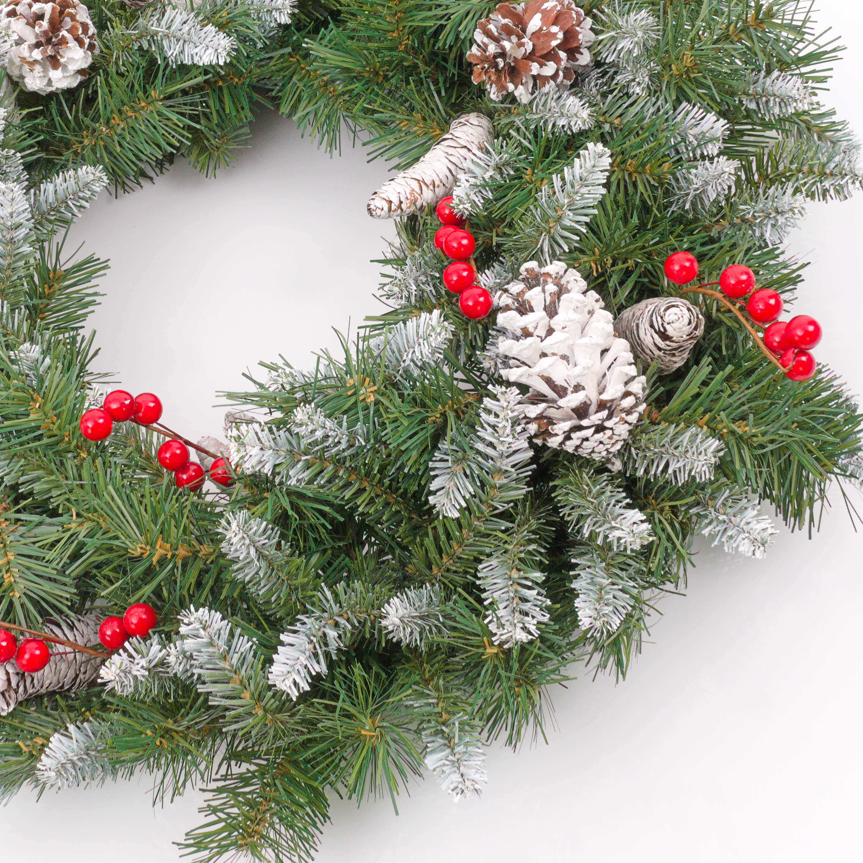 Corona de abeto decorativa MARLIES, para espacios resguardados, ignífuga, nieve, Ø55cm