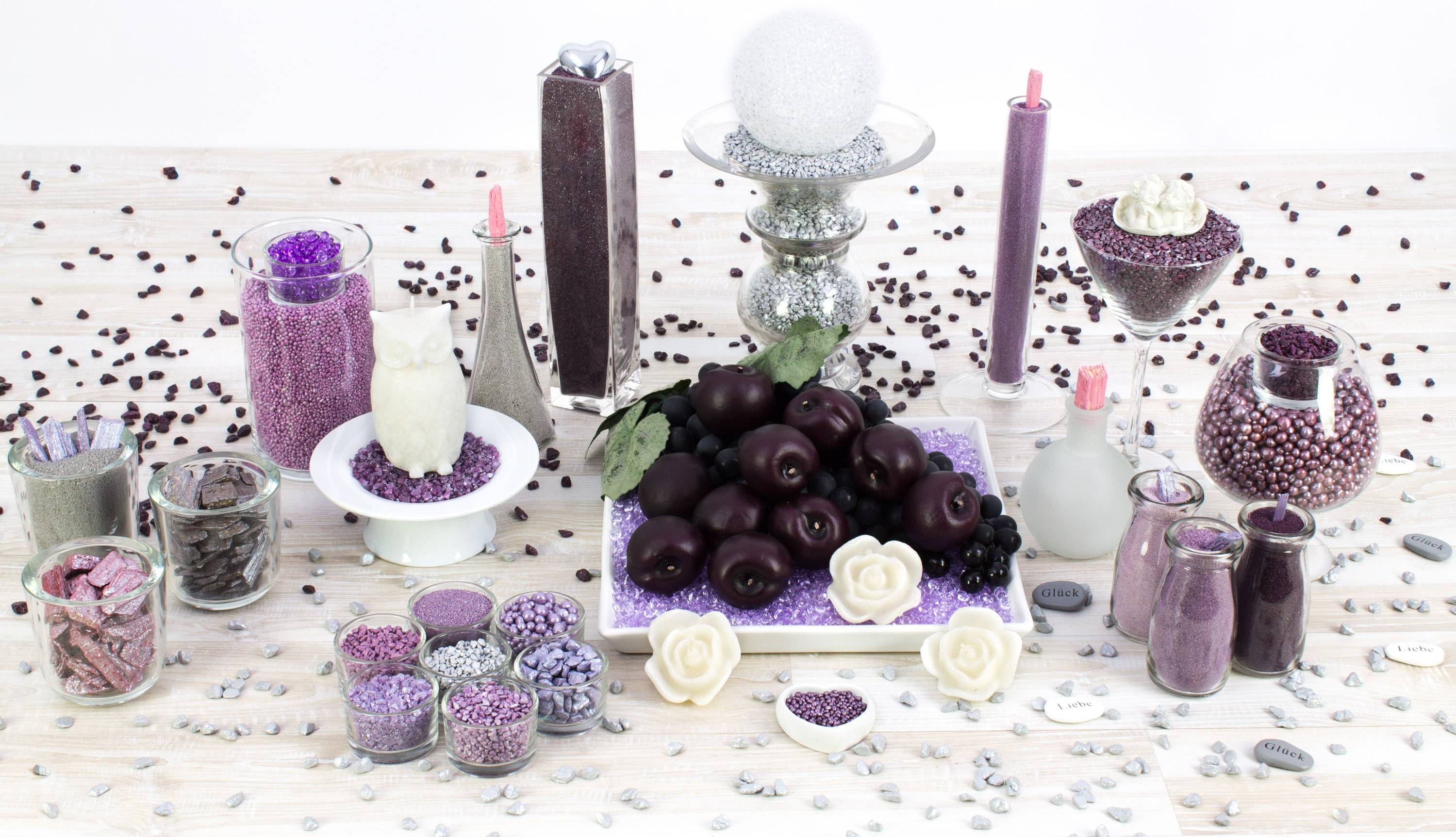 Cristales decorativos / Piedras de cristal SCRAT, color lila brillante, 3-8mm, 605ml bote, Producido en Alemania