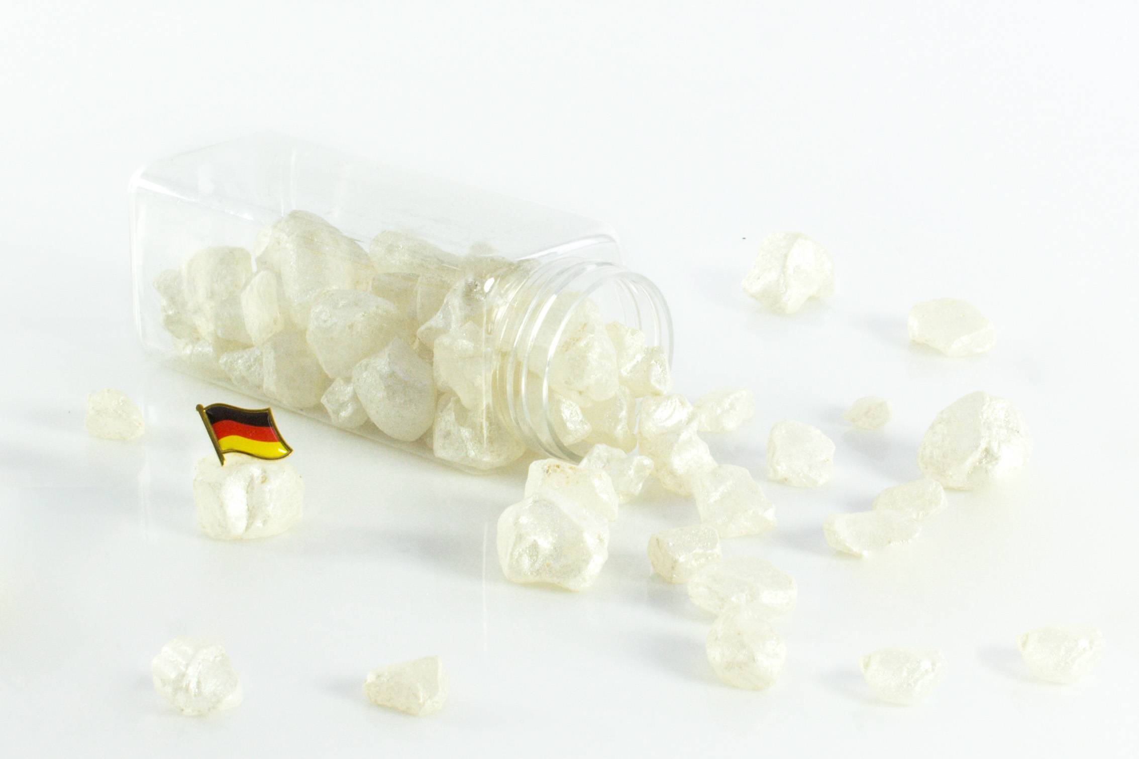 Cristales decorativos / Piedras de cristal SCRAT, transparente-helado-purpurina, 15-40mm, 605ml bote, Producido en Alemania