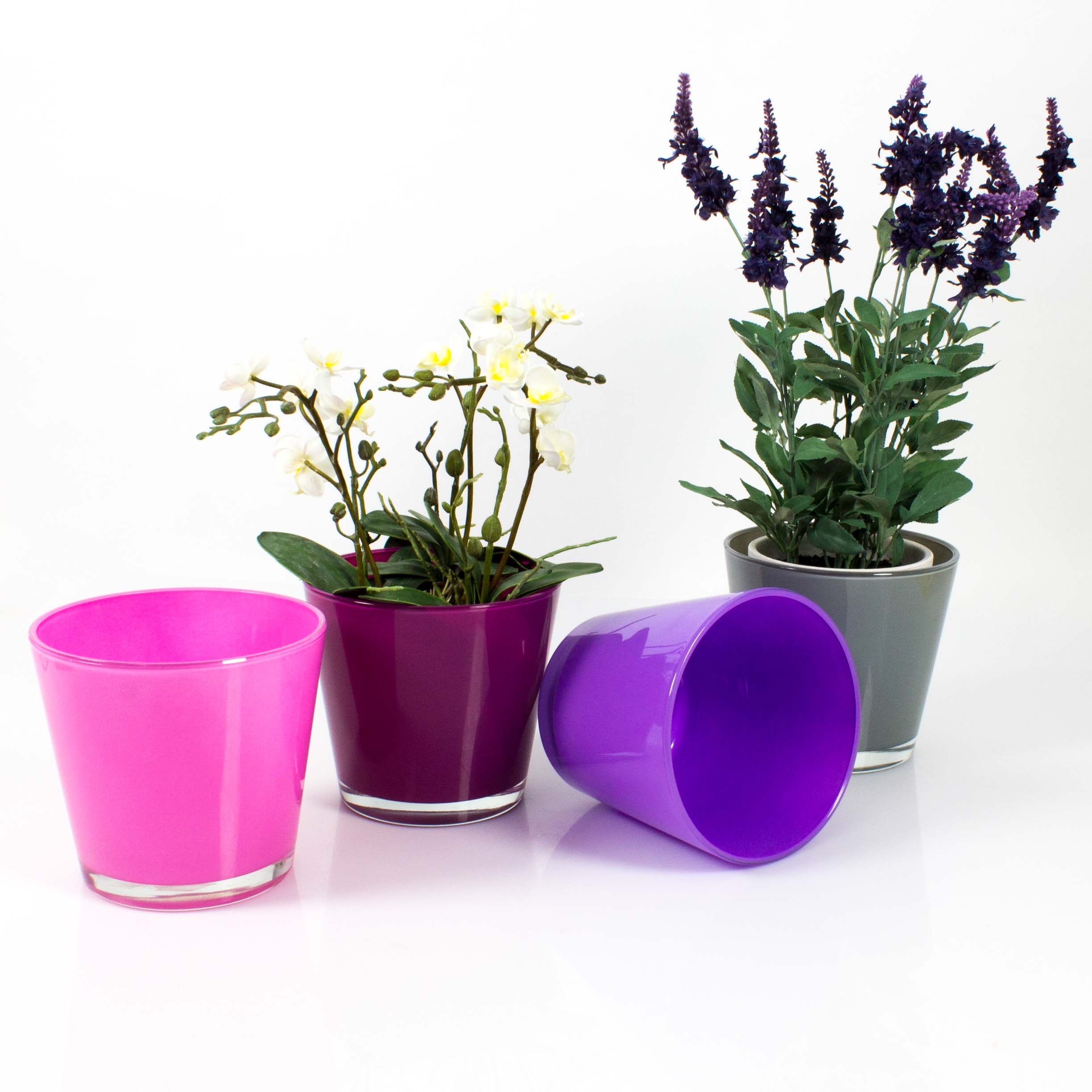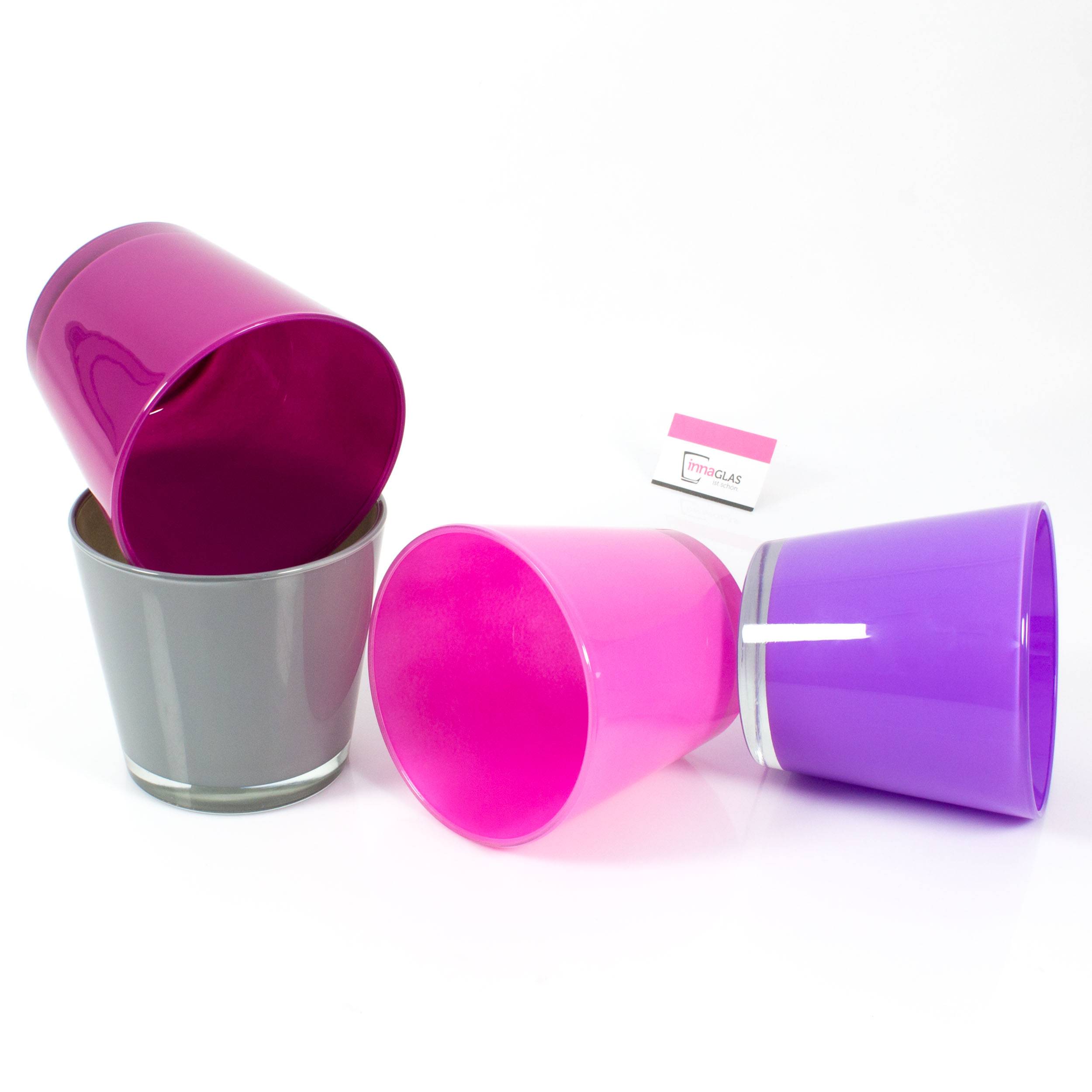 Cubretiesto / Jarrón redondo de vidrio ALENA, violeta, 15cm, Ø 16,5cm