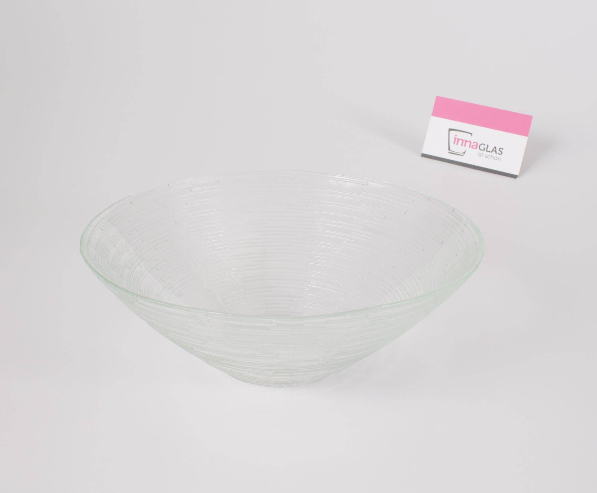 Cónico cuenco de cristal LINUS de INNA Glas. El bol circular de cristal posee un diámetro de 20 cm y es ideal para llenar con aperitivos, frutas o ensaladas.