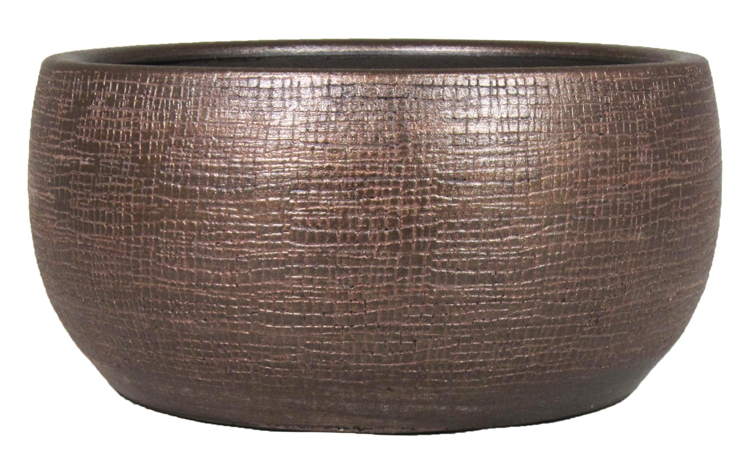 Cuenco para flores AGAPE de cerámica en color cobre con un diámetro de aprox. 33 cm y una altura de aprox. 15 cm.