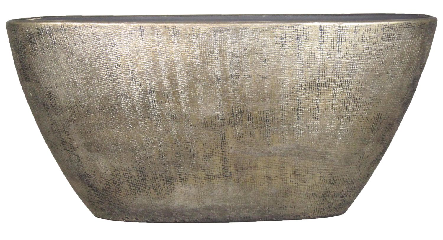 Tiesto de flores AGAPE de cerámica en color dorado con una longitud de aprox. 73 cm y una altura de aprox. 36 cm.