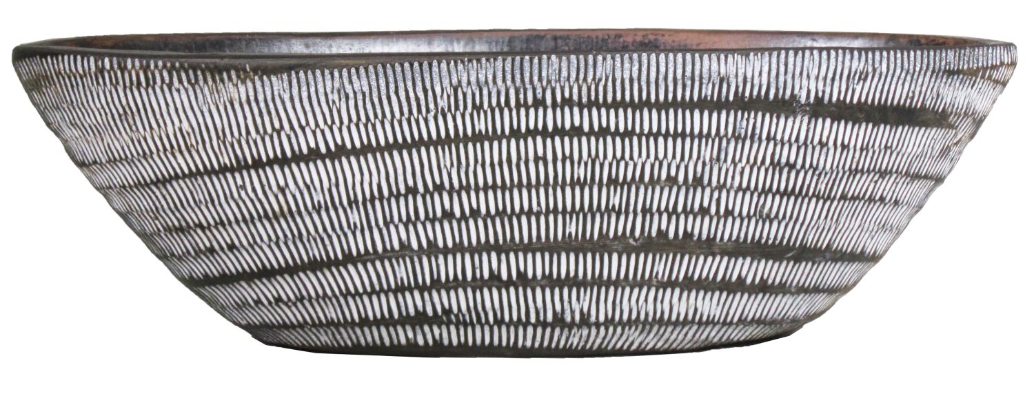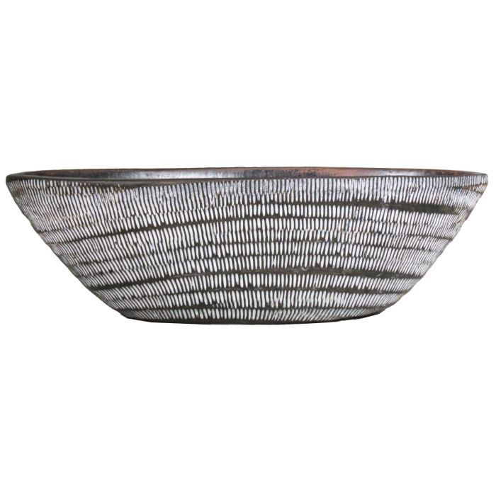 Cuenco de cerámica alargado TIAM estriado, marrón-blanco, 47x23x14cm