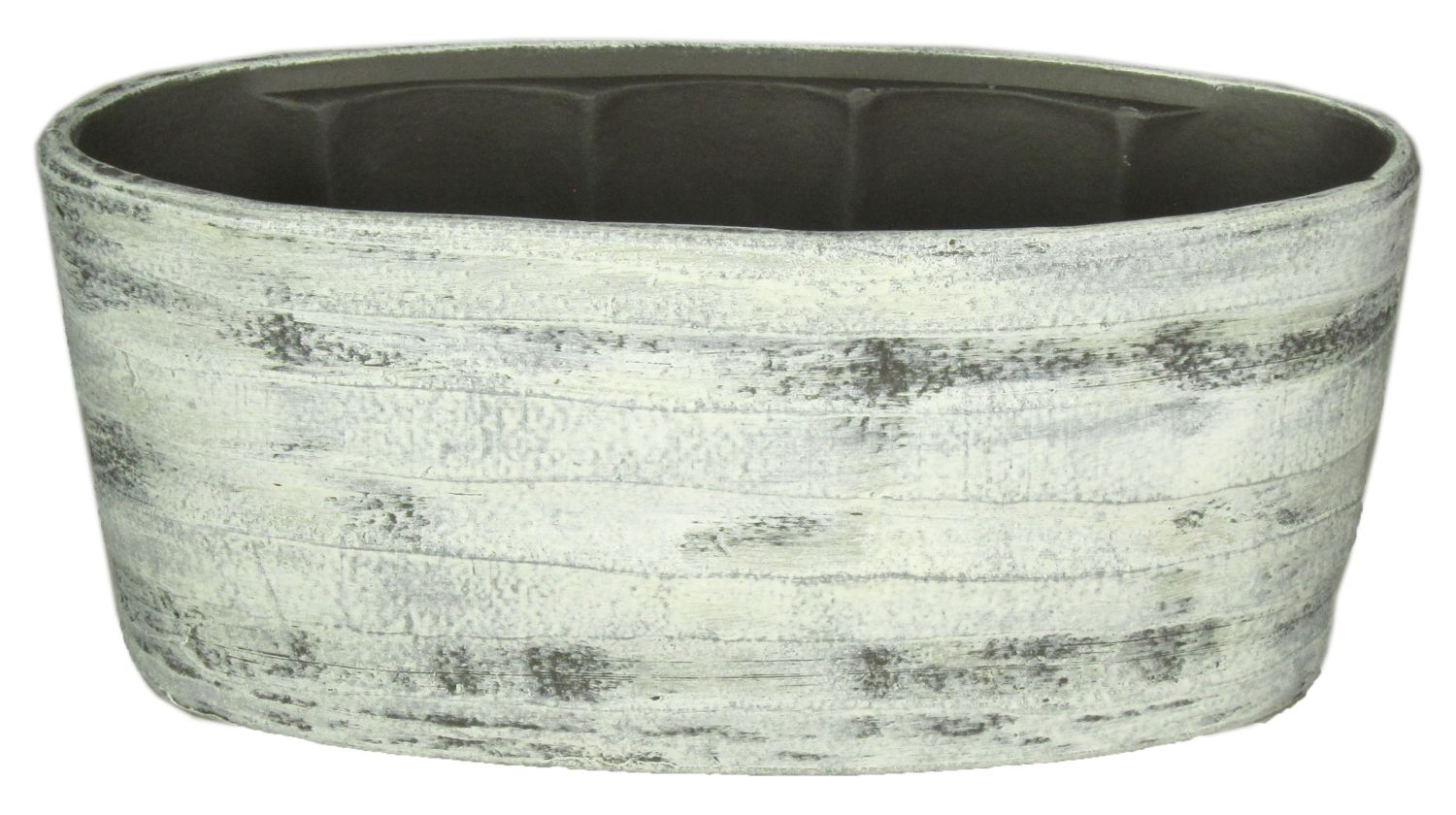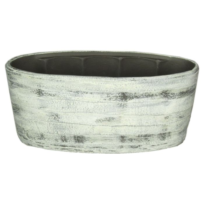 Maceta ADELPHOS de cerámica en color blanco-gris oscuro con una longitud de aprox. 33 cm y una altura de aprox. 15 cm.