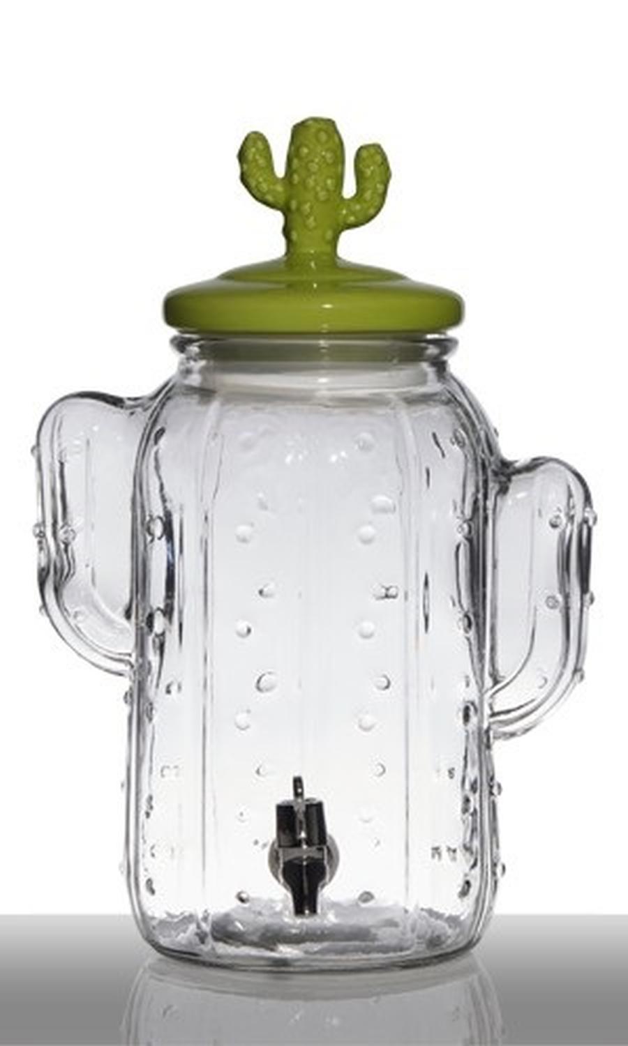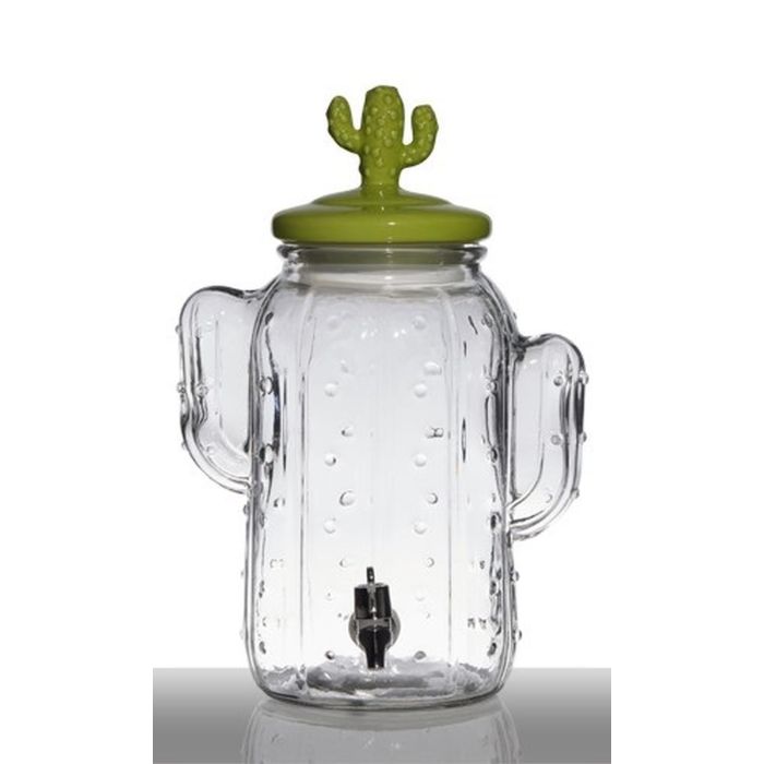 Dispensador de bebidas de vidrio AILIS, grifo, tapa de cerámica de cactus, 5L, transparente-verde, 26x19x29cm