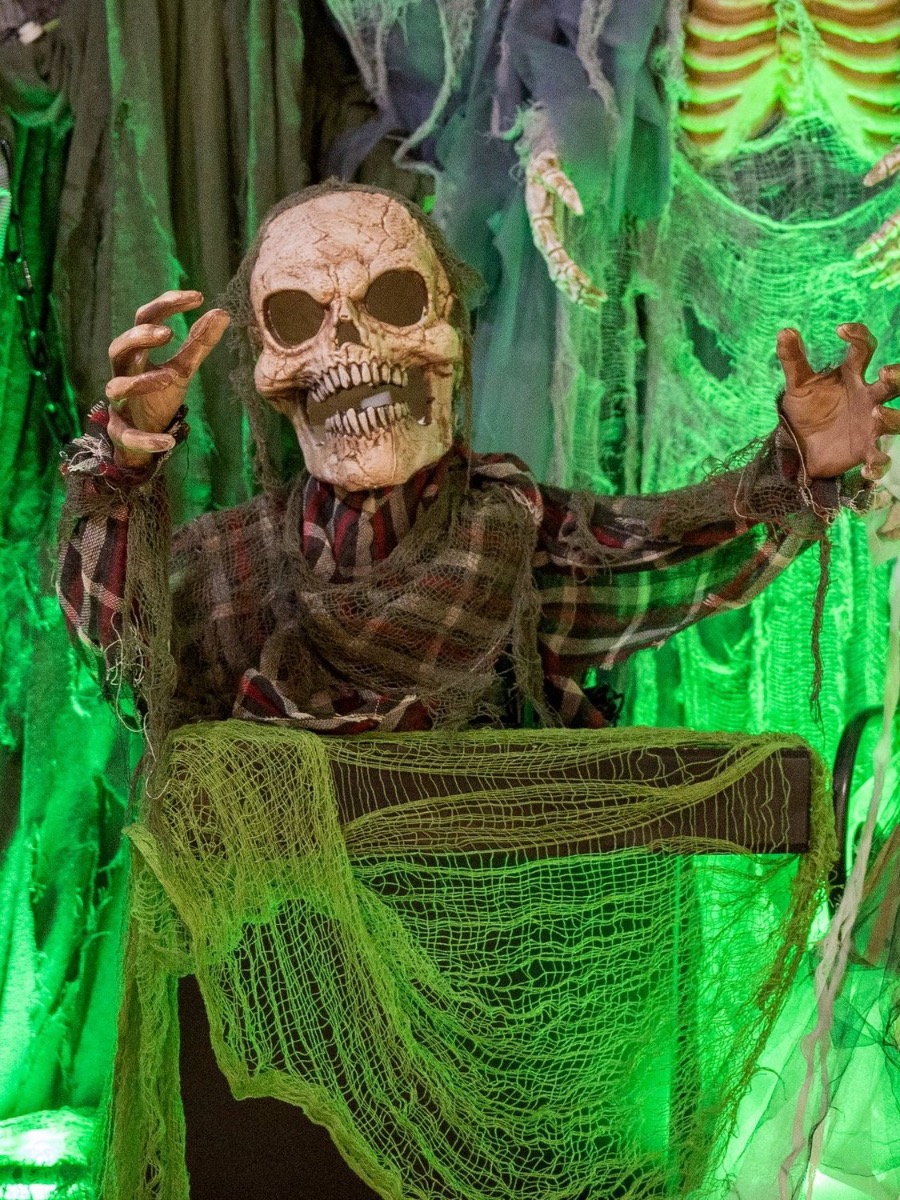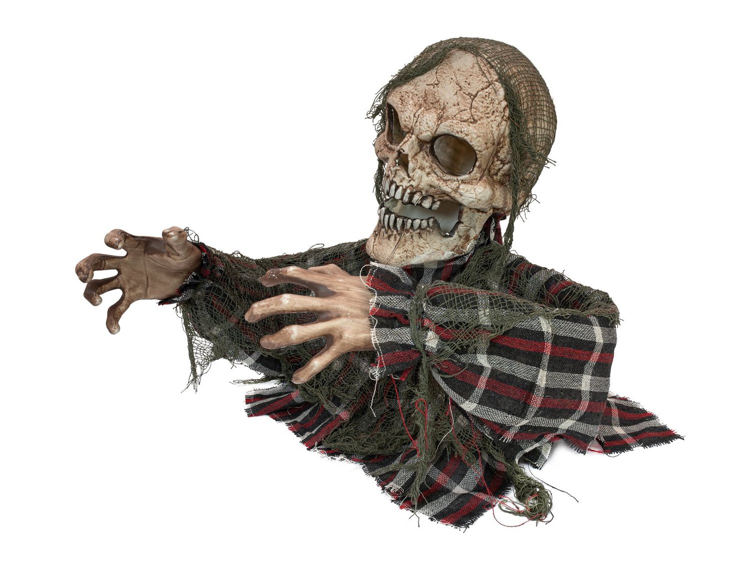 Esqueleto de zombi de Halloween LATAWICA, con función movimiento-sonido, LEDs, 22x10x45cm
