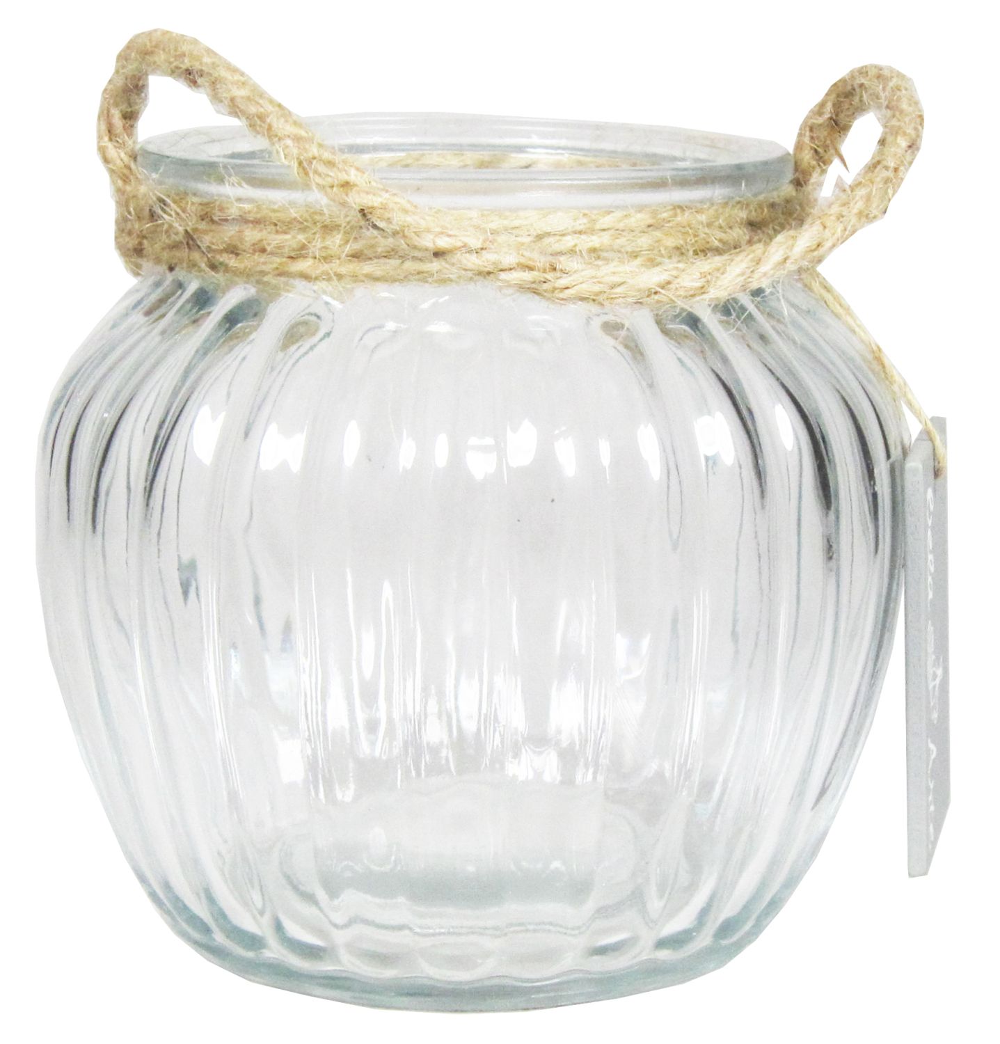 Farol de cristal AKILI con asa, rayas verticales, transparente, 13,5cm, Ø15cm