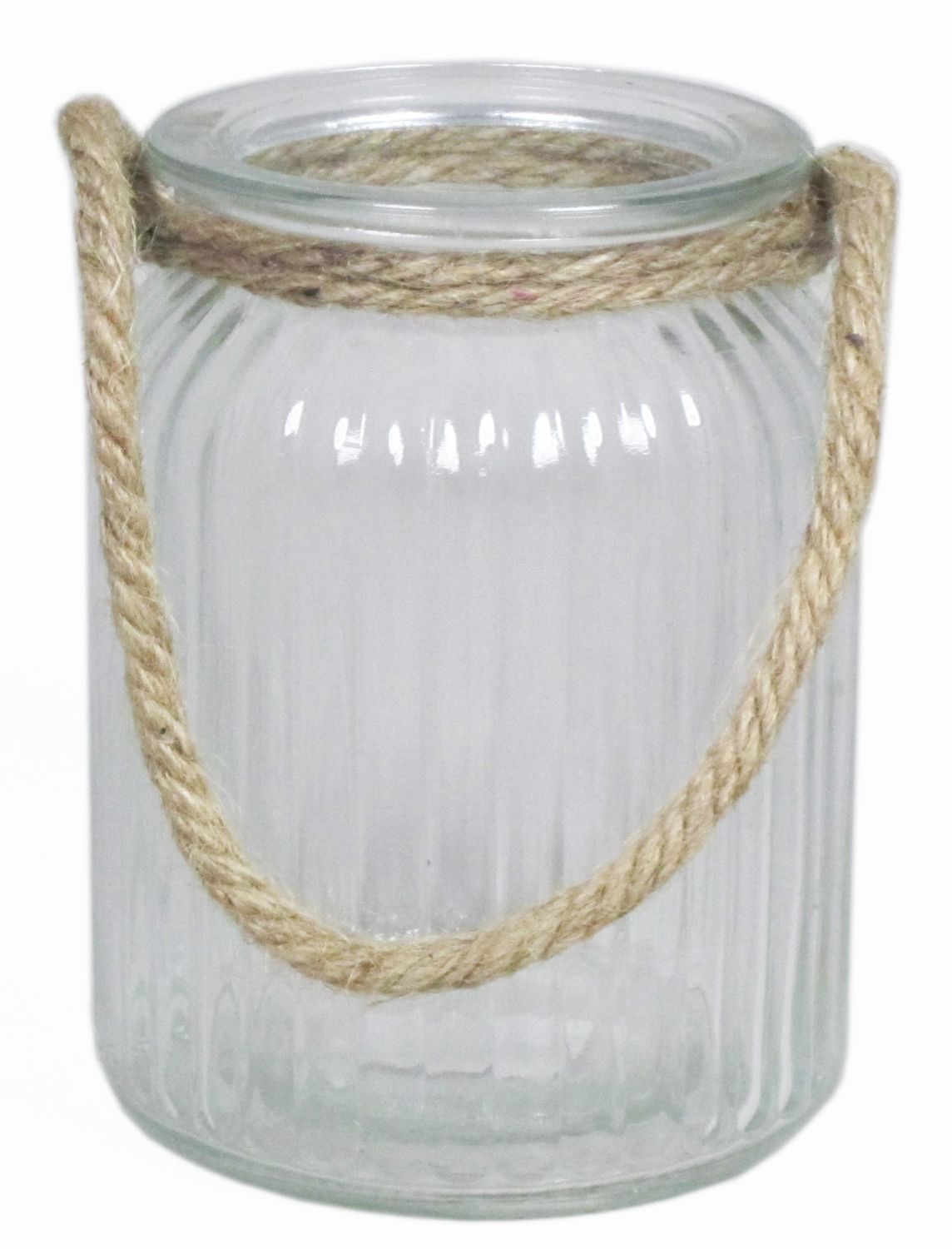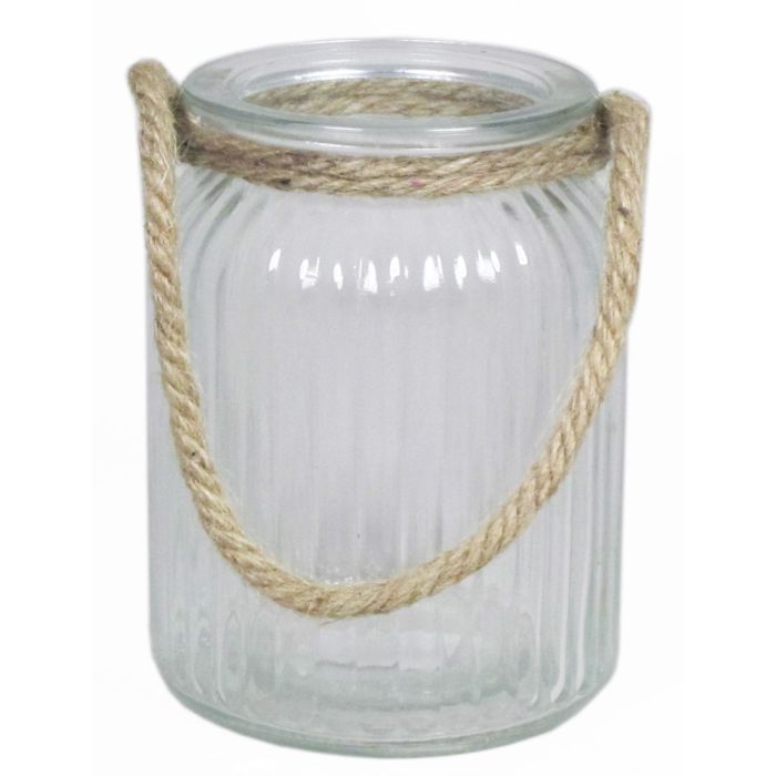Farol de vidrio ADANNA con asa, rayas verticales, transparente, 14,5cm, Ø11cm