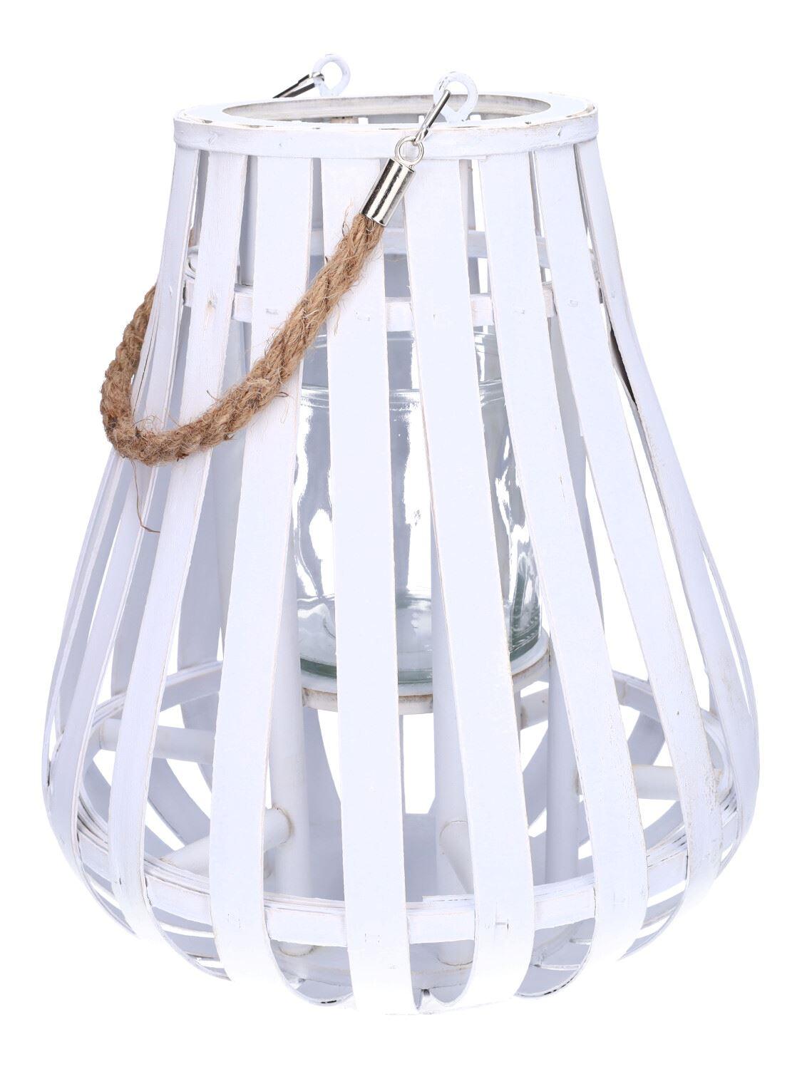 Farolillo ALVARU de ratán, con cristal de vela, asa, blanco, 31cm, Ø24cm