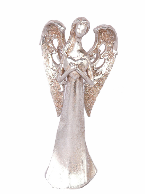 Figura de ángel decorativo PINTA, corazón en las manos, plata-cobre, 30 cm