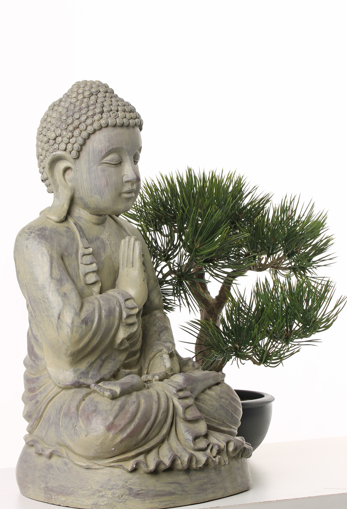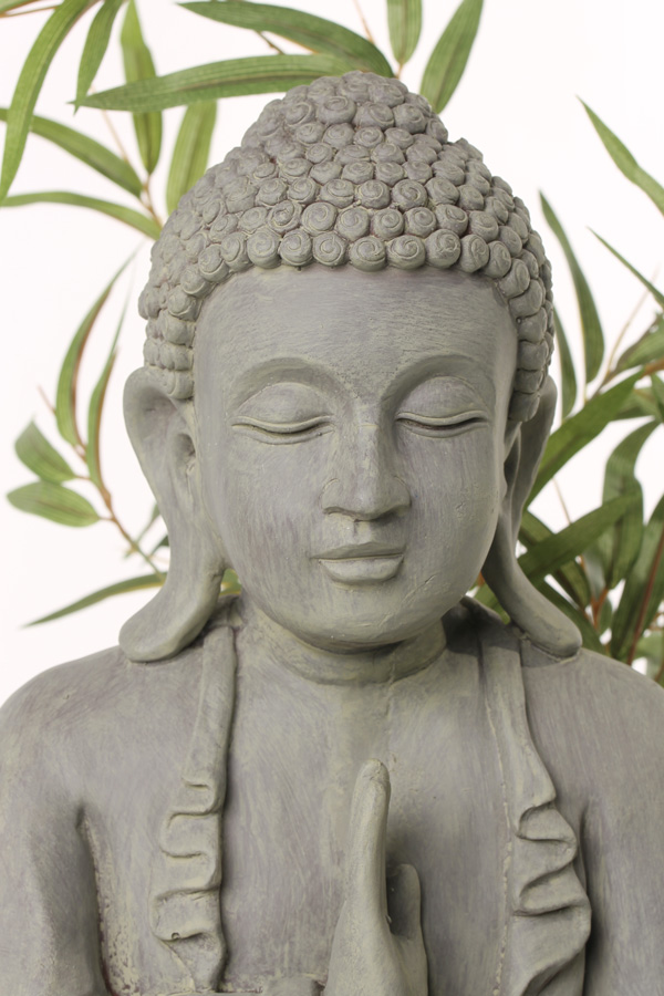 Figura de Buda SHANTA, meditando sentado, gris, 45cm