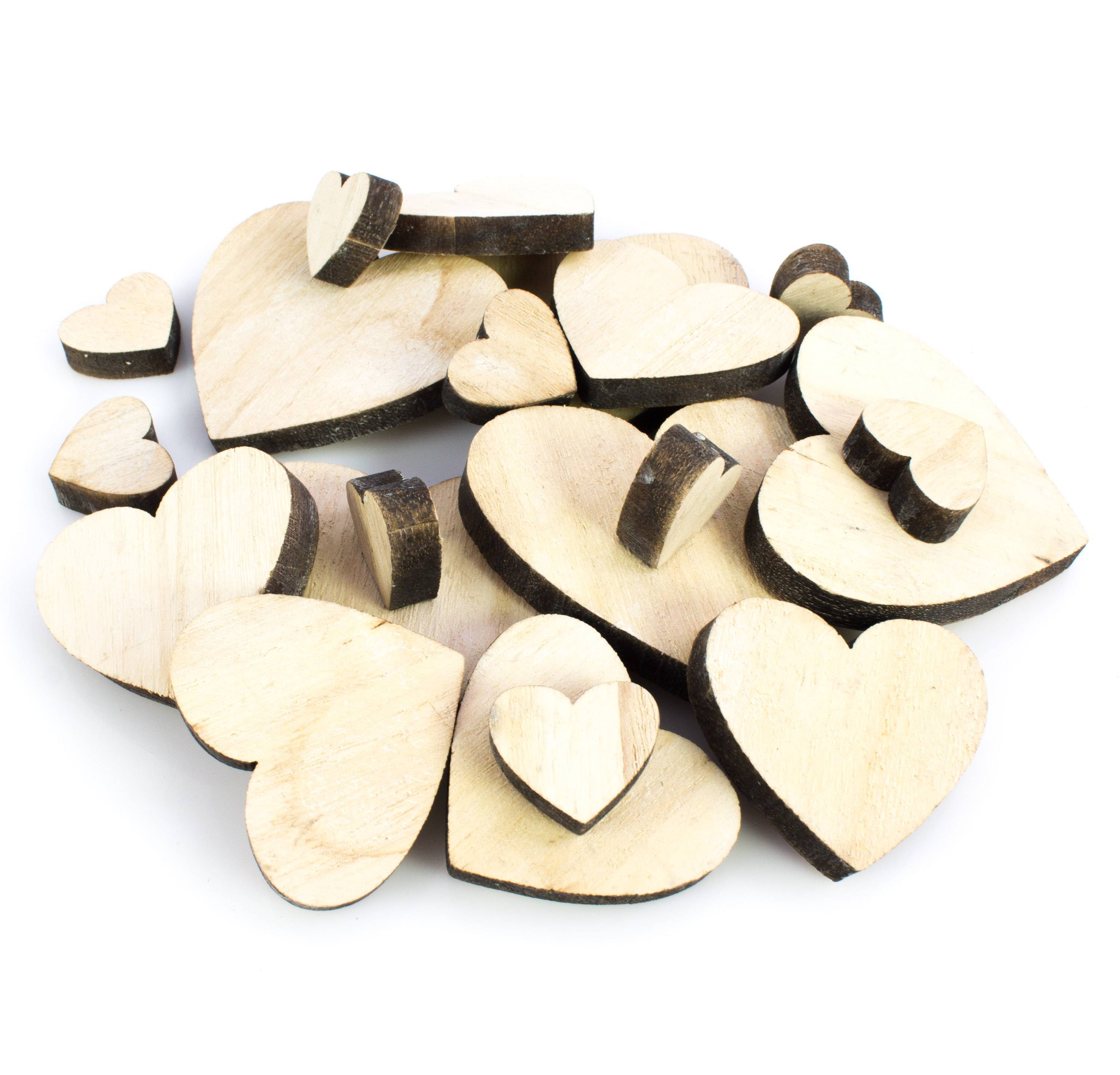 Figura de madera KIMARA, corazon, juego de 19, beis, 2,5-7cm