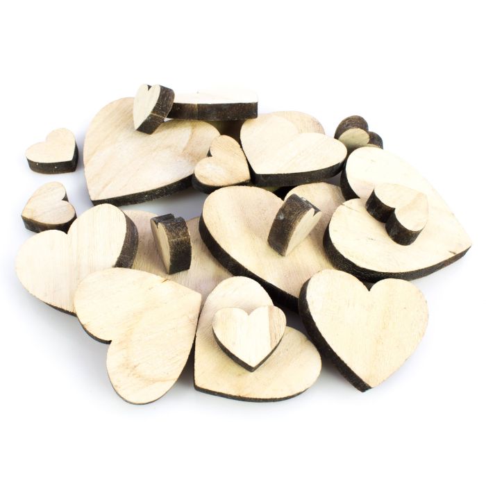 Piezas de madera en forma de corazones