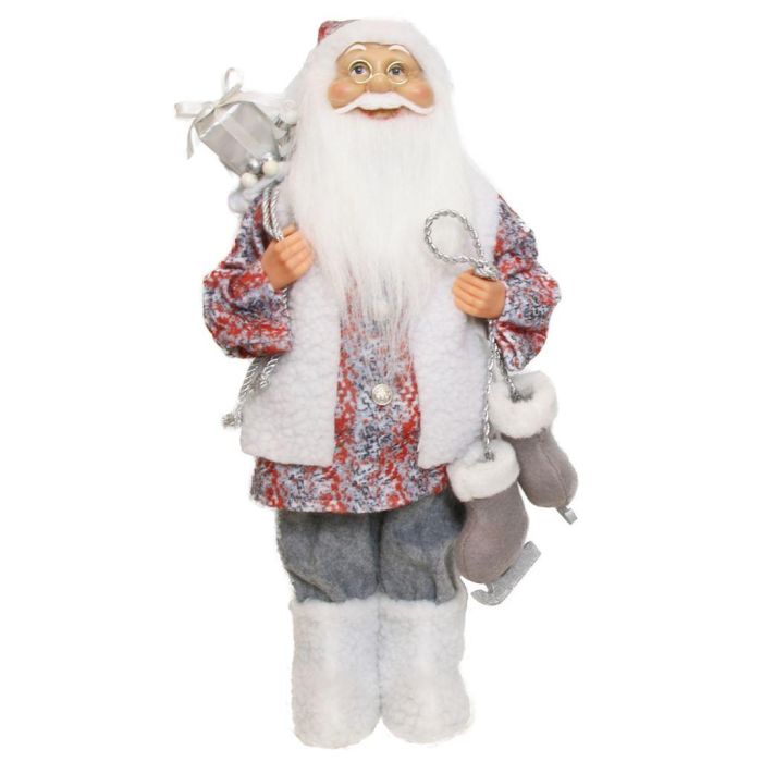 Figurita de Papá Noel ABENZIO, patines de hielo, saco de regalos, blanco-gris-rojo, 22x14x45cm