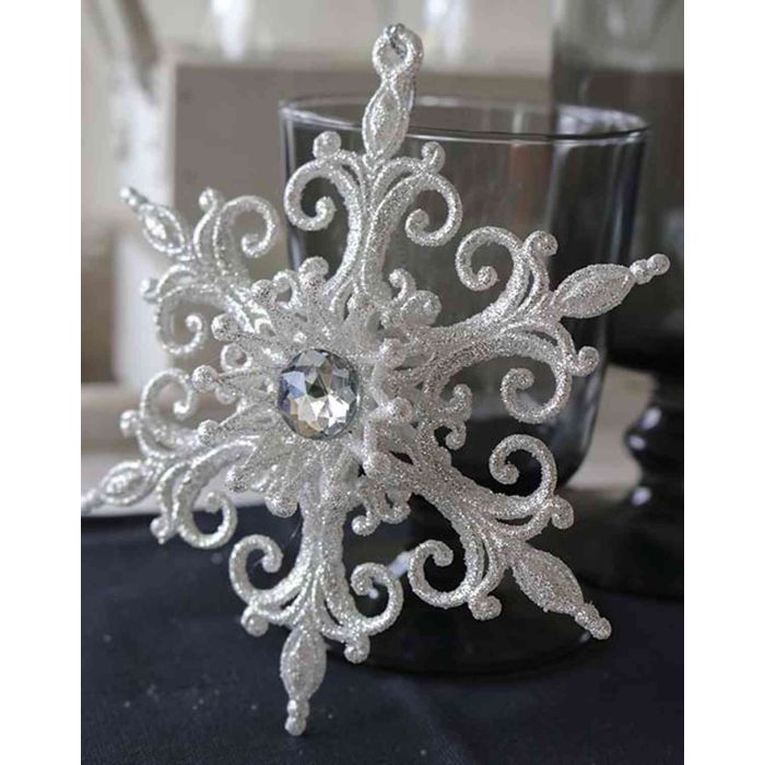 Flor de hielo acrílica para colgar ANTONIO, brillo, blanco-plata, Ø14cm