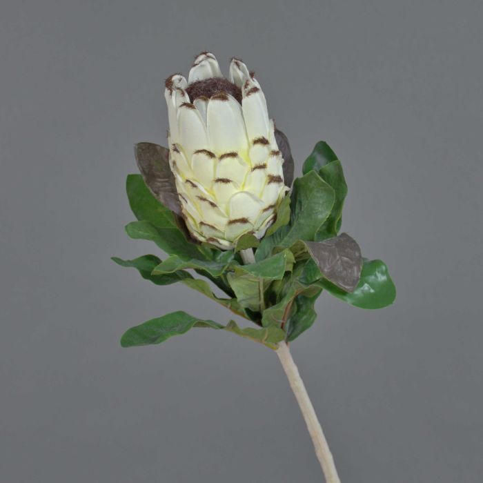 Flor falsa Protea NELLI, blanco-amarillo, 75cm, Ø8cm