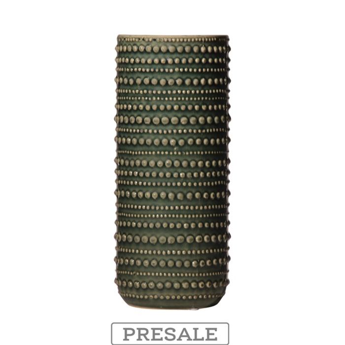 Florero CHASKA de cerámica, puntos, verde, 28cm, Ø12cm