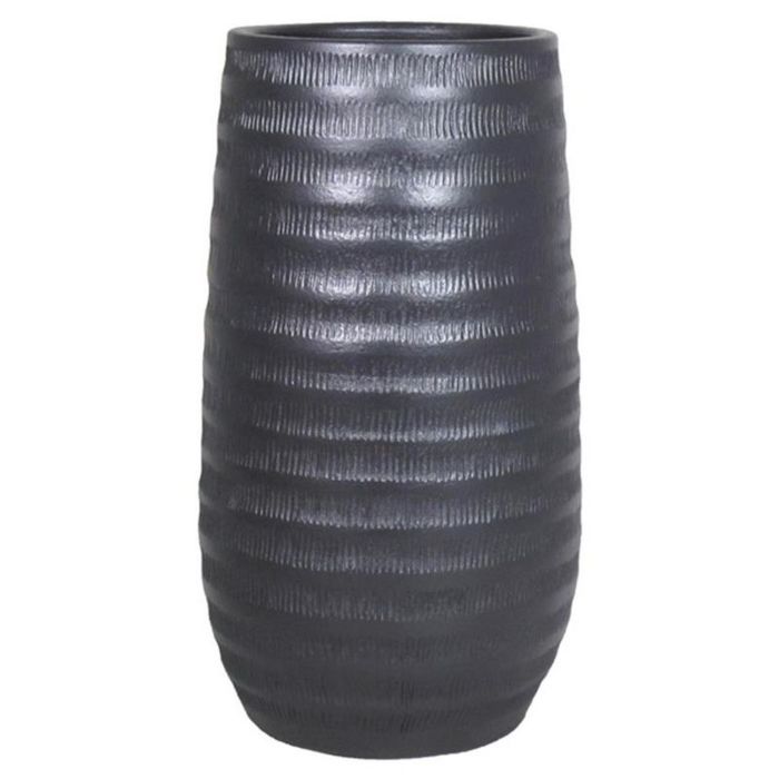 Florero de cerámica TIAM con muescas, negro-mate, 50cm, Ø26cm